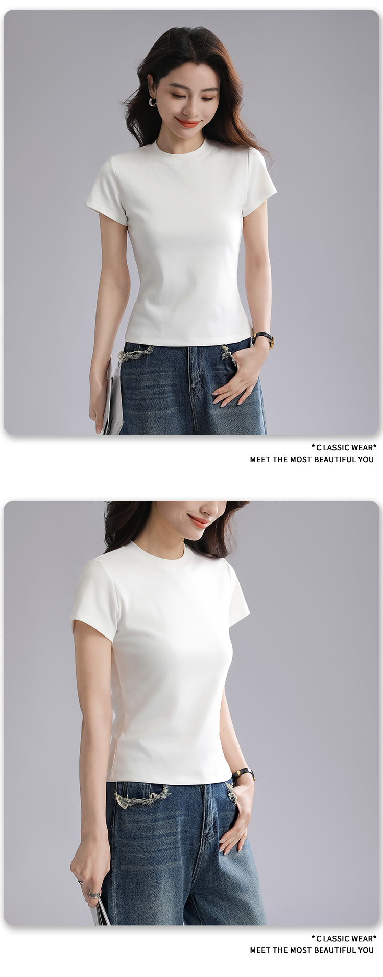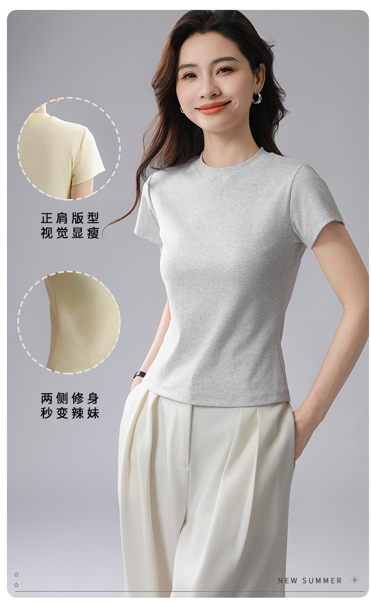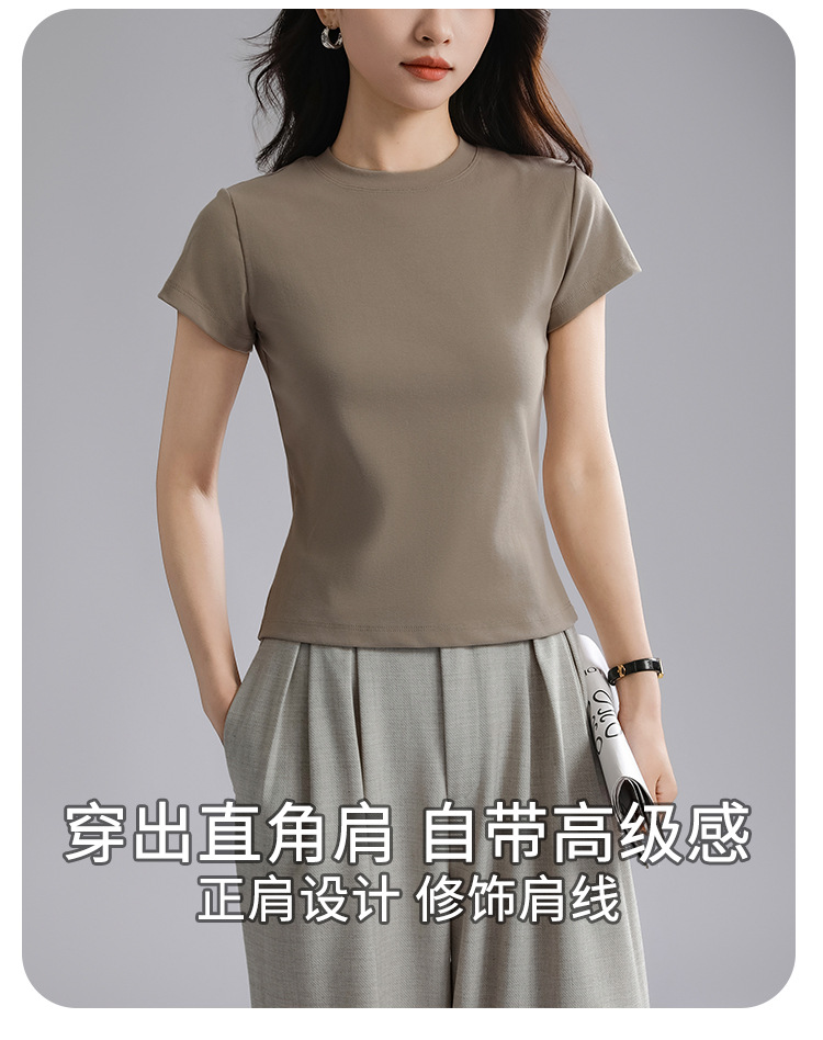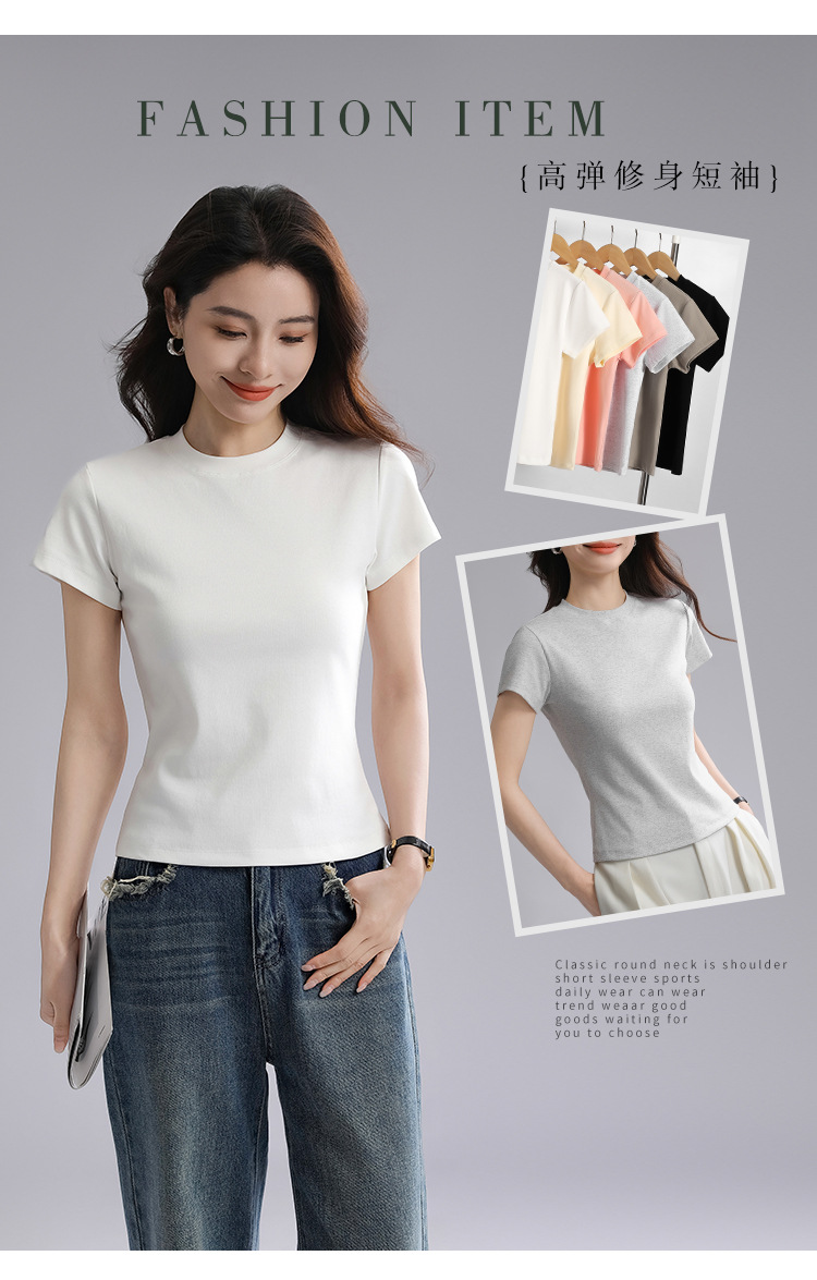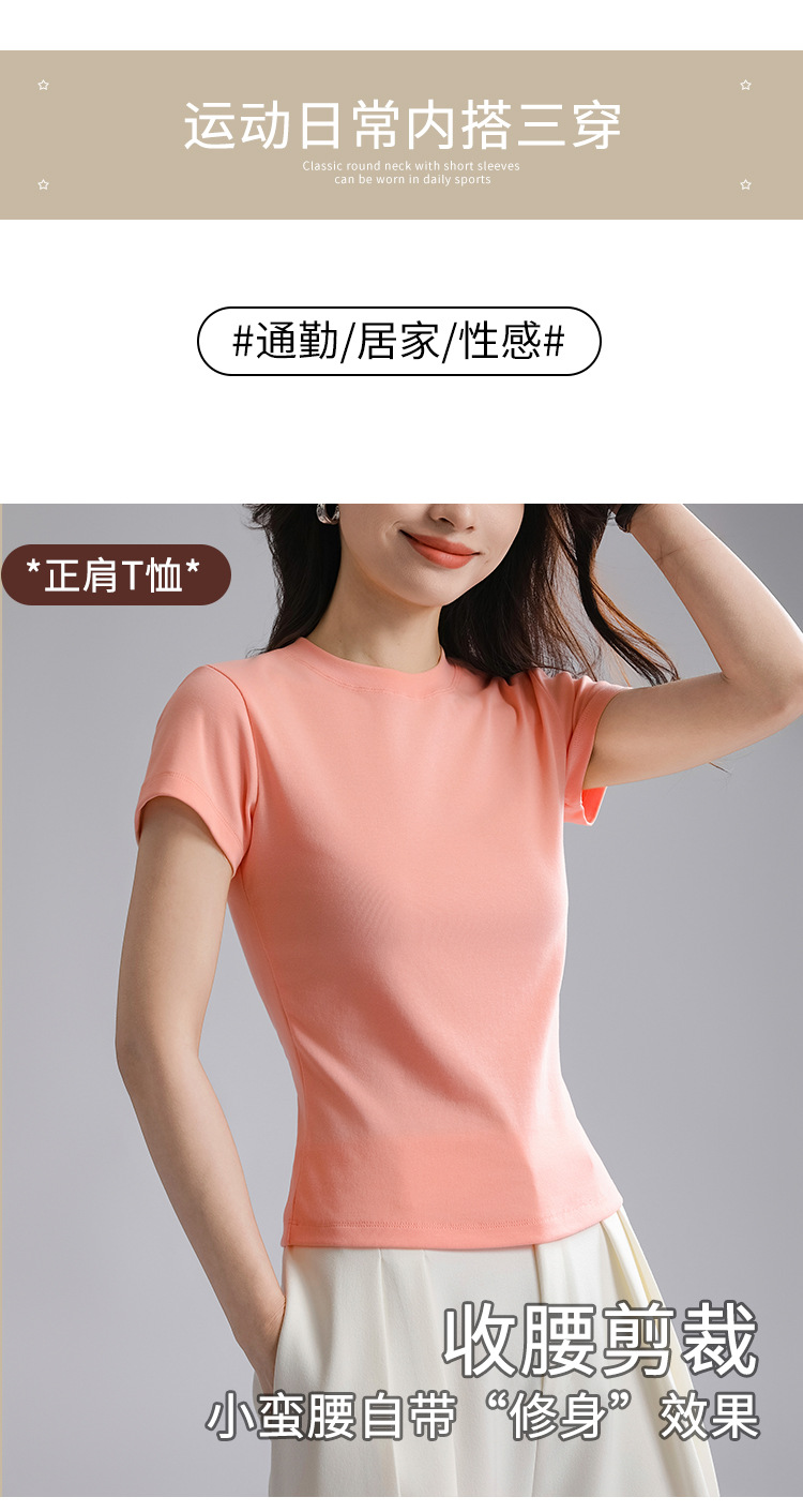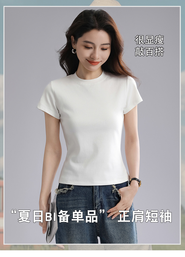 올 매치 슬리밍 솔리드 컬러 숄더 반팔 티셔츠 여성용 2025 년 여름 슬림 핏 쇼트 화이트 베이스 레이어 셔츠 탑스토어 가기