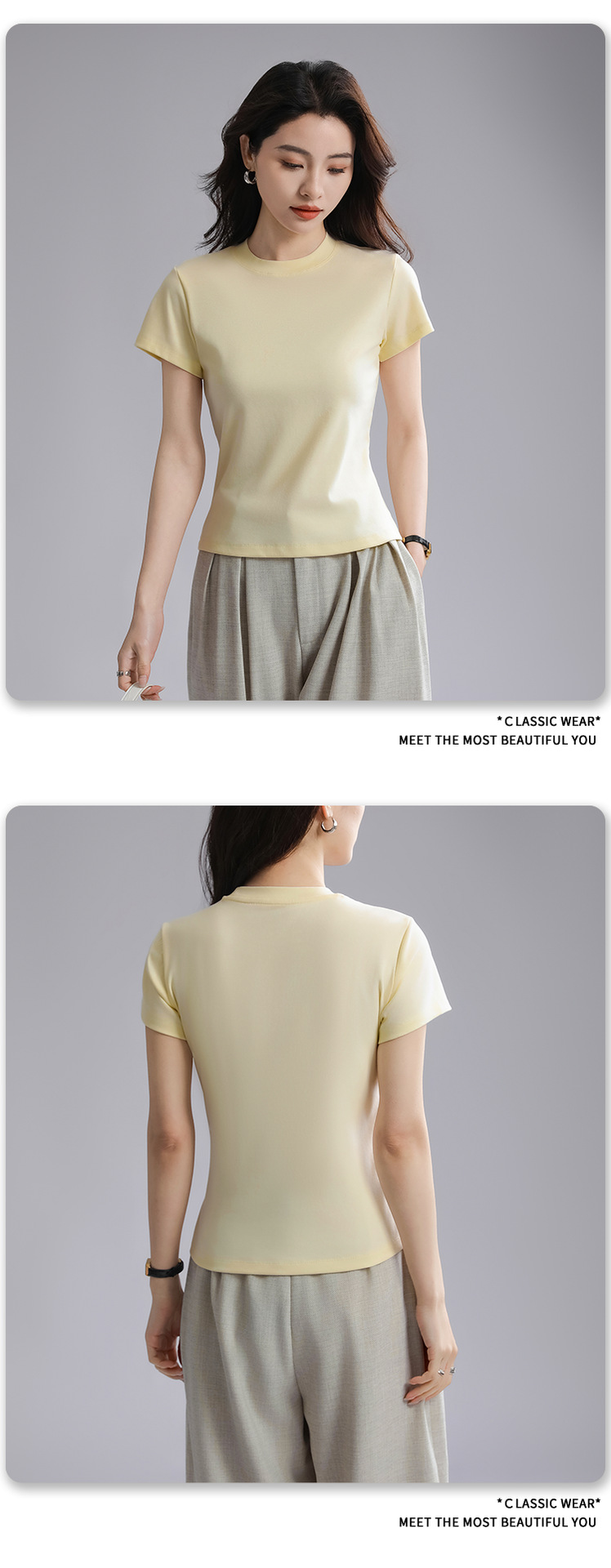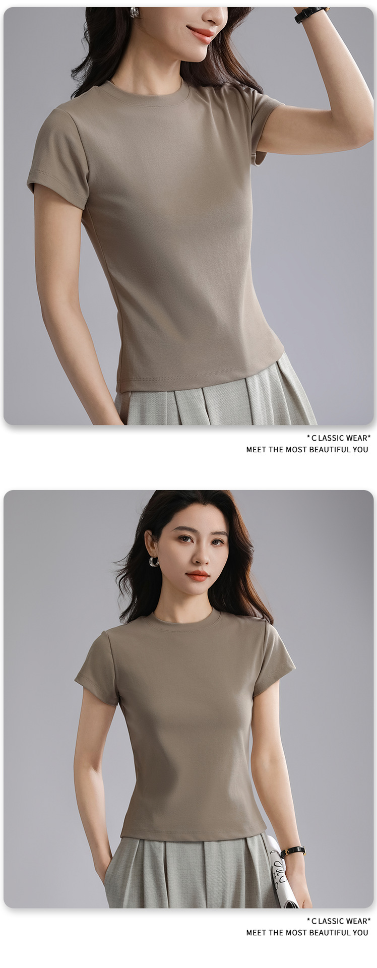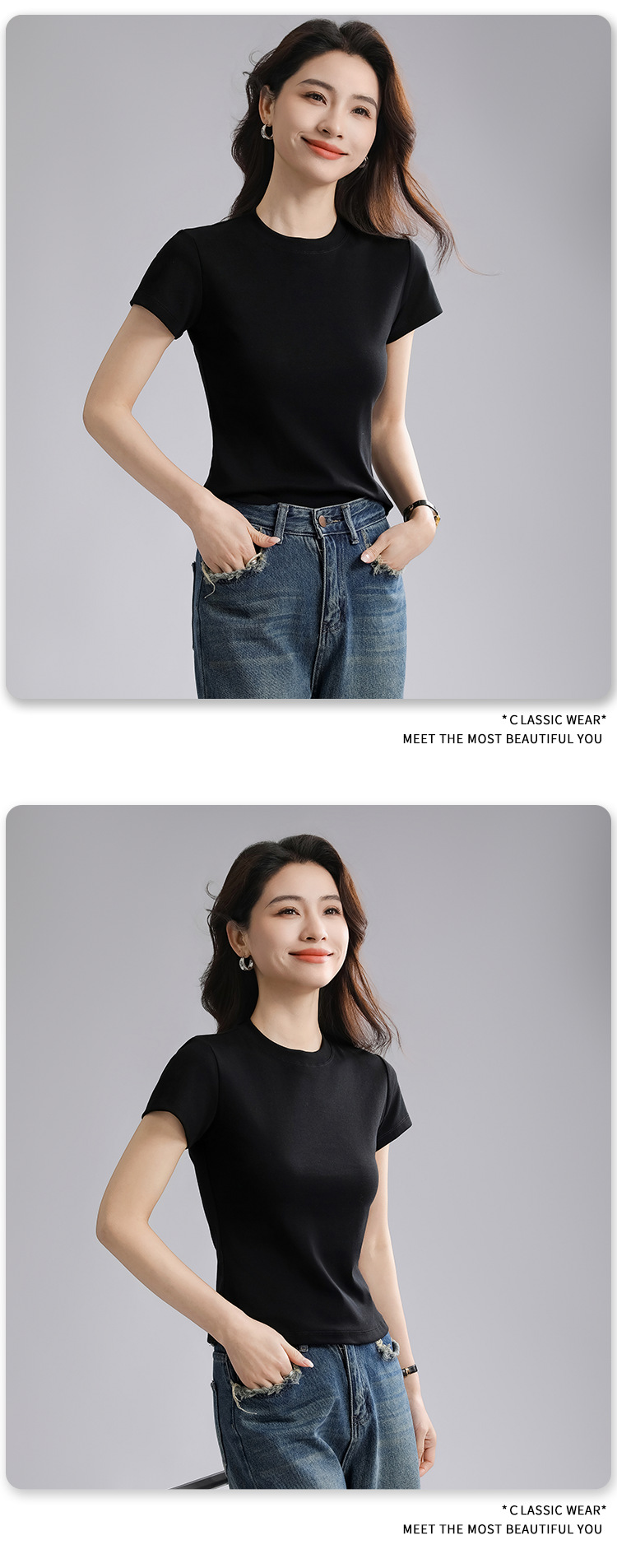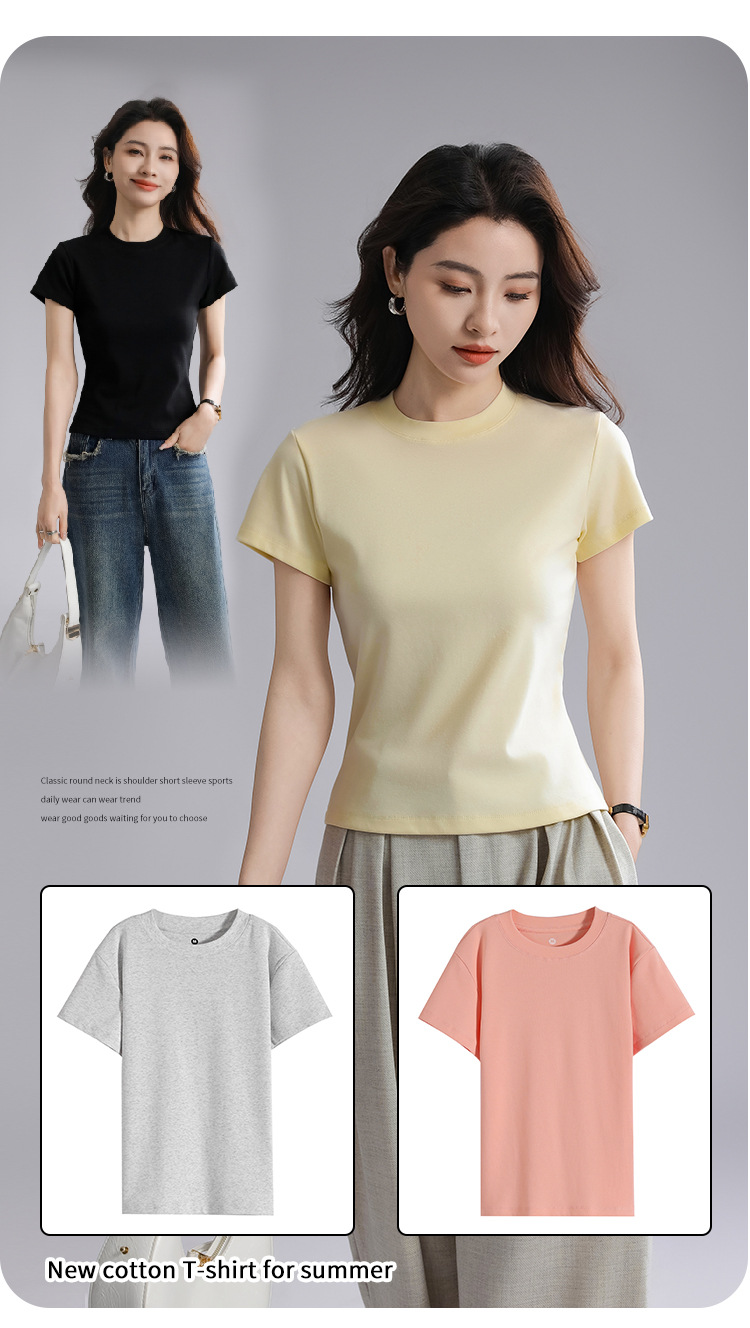 올 매치 슬리밍 솔리드 컬러 숄더 반팔 티셔츠 여성용 2025 년 여름 슬림 핏 쇼트 화이트 베이스 레이어 셔츠 탑스토어 가기