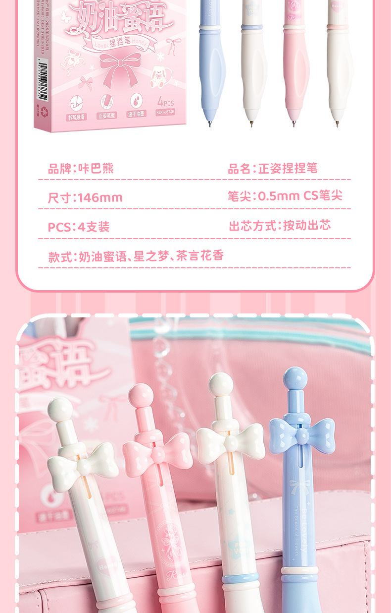 카바베어 창의적인 스퀴즈펜 학생용 자세교정 소프트 그립 중성펜 시험용 검정펜 숙제 연습용 펜 서명펜
