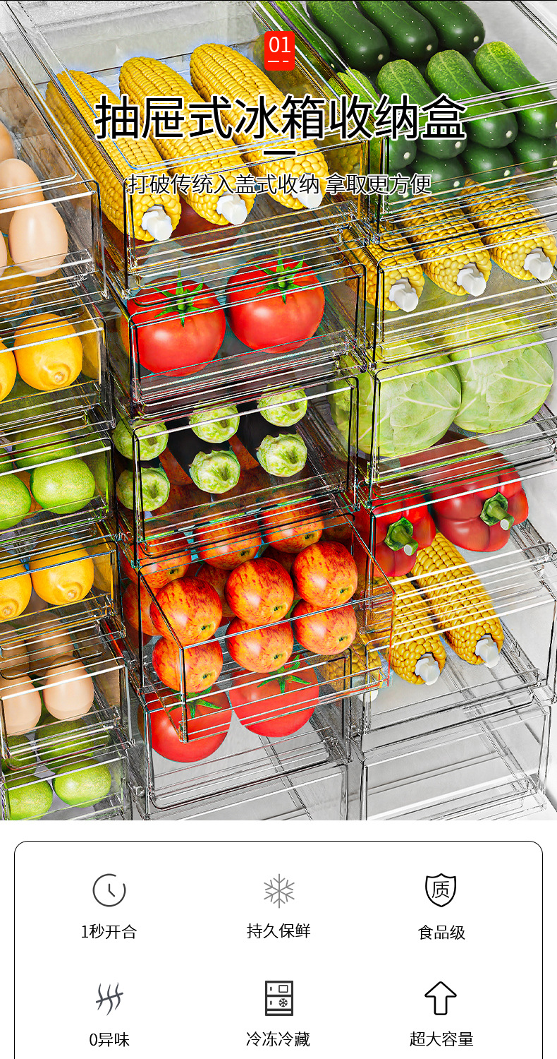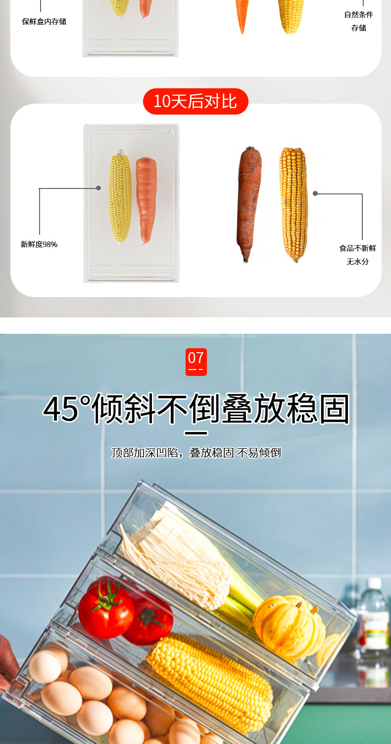 냉장고 저장 상자 과일 서랍 유형 큰 투명한 애완 동물 고기 배수 식품 야채를 위한 직사각형 신선한 보관 상자