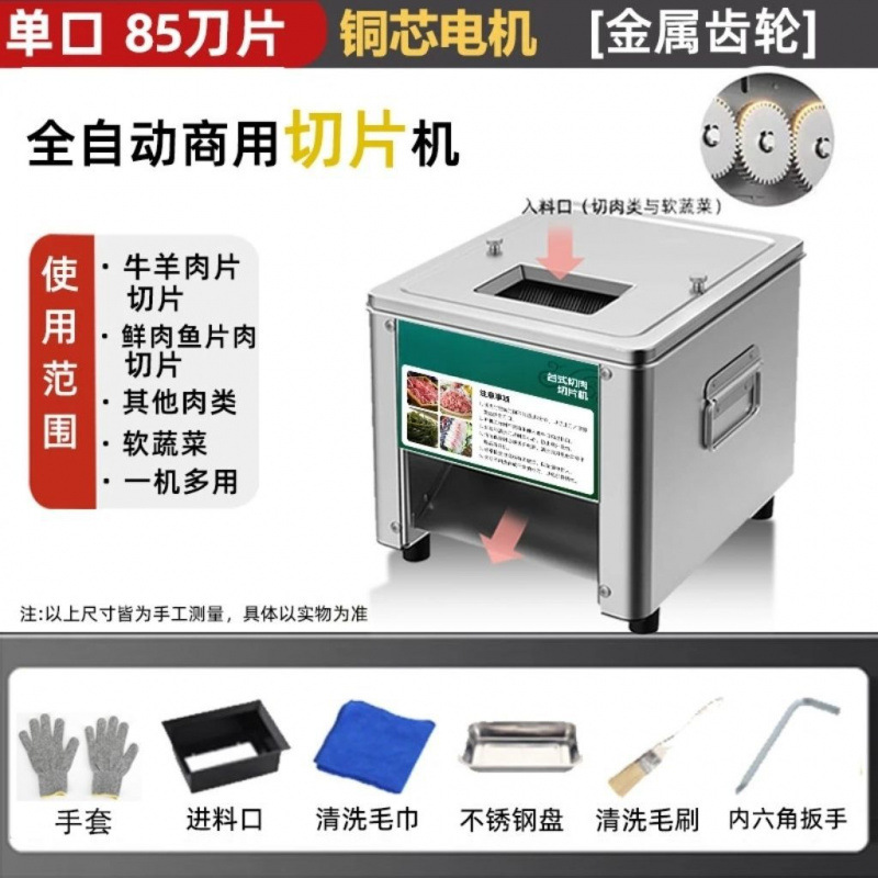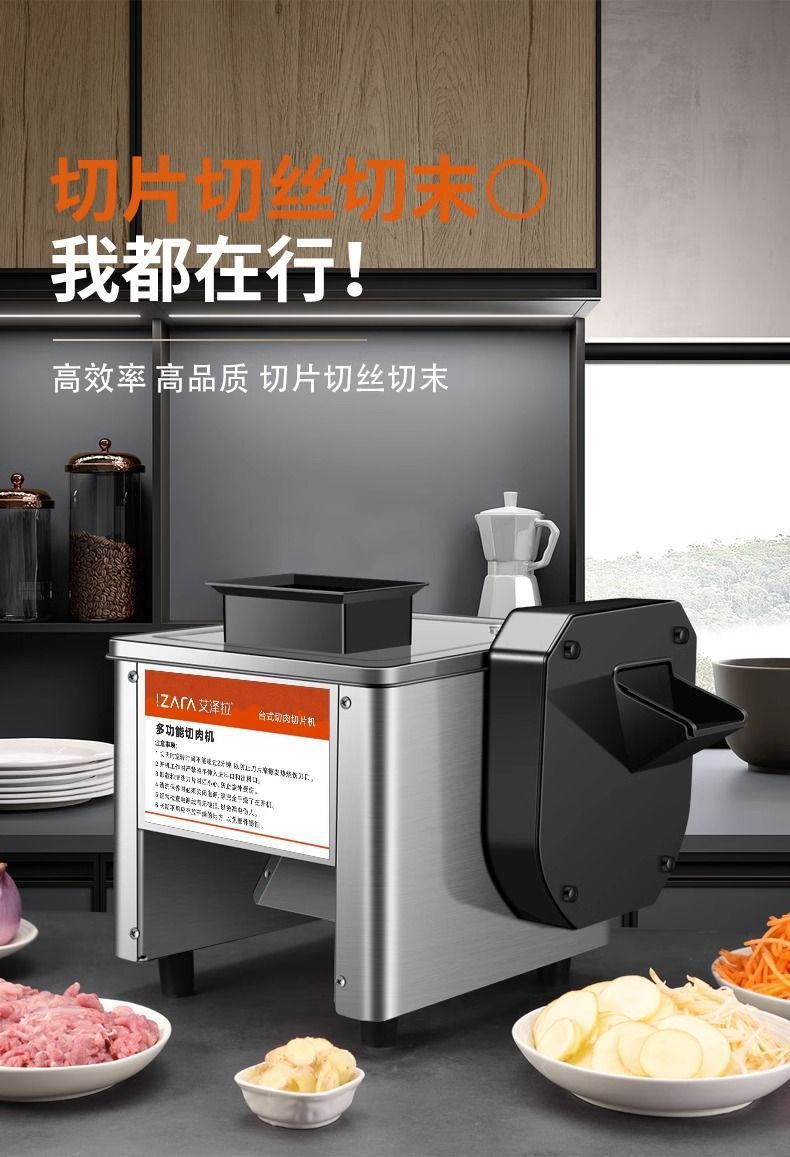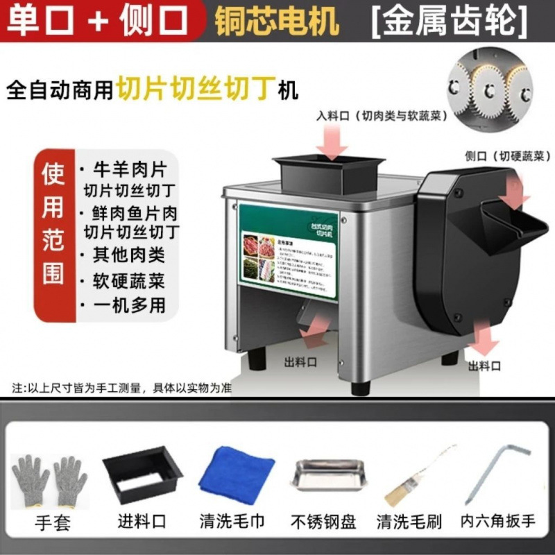 상업용 전기 신선한 고기 슬라이스 및 다진 고기 완전 자동 야채 및 고기 다지기 스테인레스 스틸 고기 절단기 돼지고기 슬라이스스토어 가기