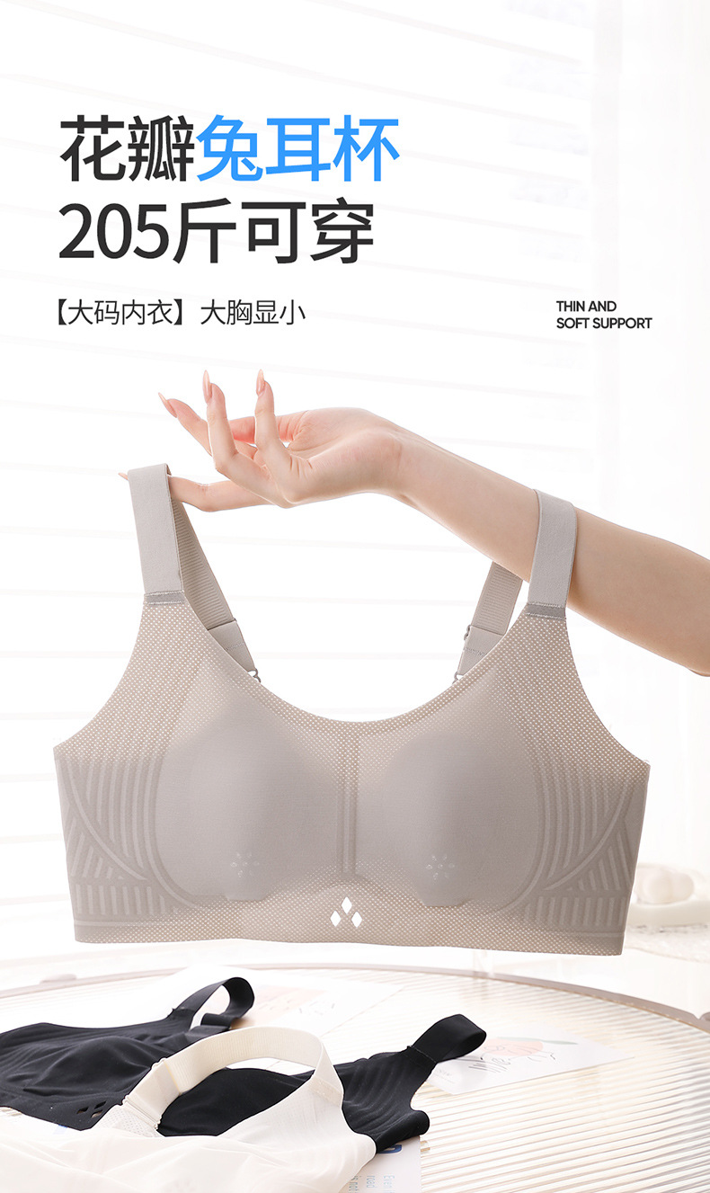 아이스 실크 플러스 사이즈 속옷 여성 100.00kg 큰 가슴 작은 가슴 토끼 귀 추적없는 여름 아름다운 뒤로 울트라 얇은 브래지어스토어 가기