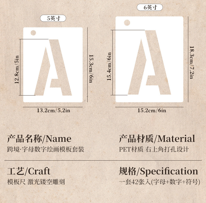 42 애완 동물 템플릿 통치자 세트 아마존 국경 영어 수도 영숫자 그리기 스프레이 낙서 템플릿