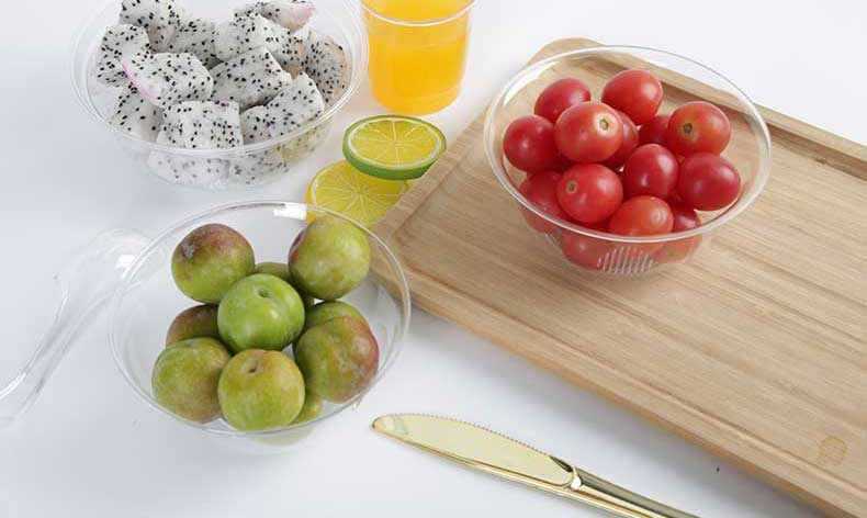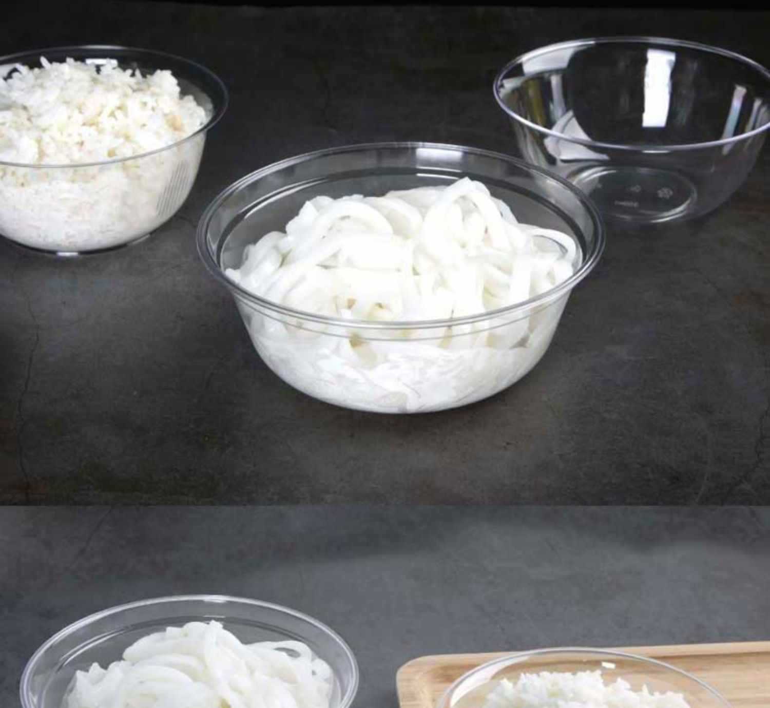 두꺼운 투명 일회용 그릇 및 젓가락 가정용 식탁 크리스탈 수프 그릇 3 종 세트 하드 플라스틱 에어 보울 식기 세트스토어 가기
