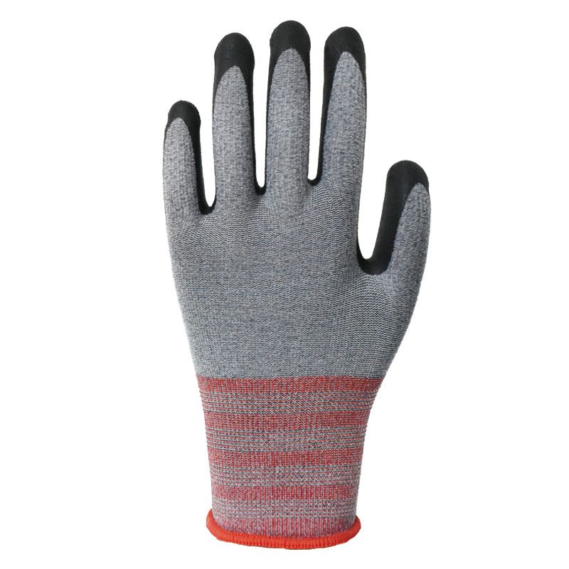 재고 그레이 화이트 나일론 스판덱스 코팅 니트릴 발포 장갑 15 핀 디퍼 내마모성 미끄럼 방지 노동 보호 장갑