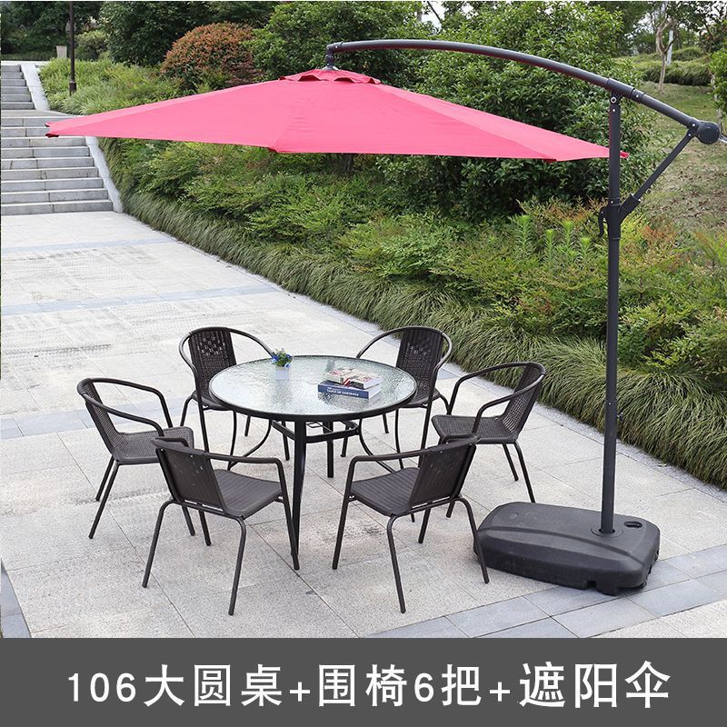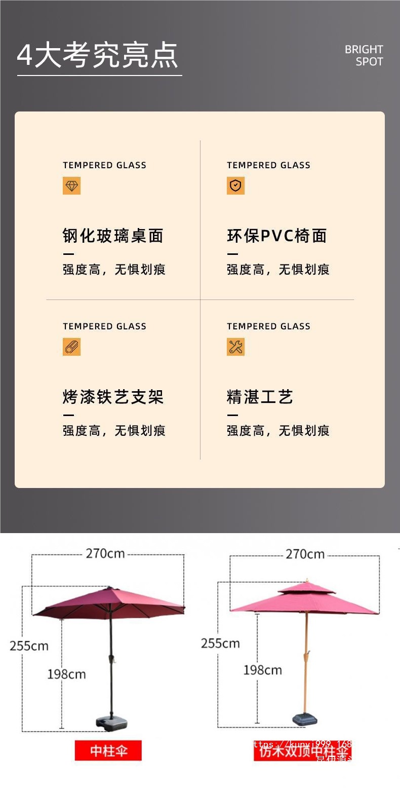 • 80물무늬 유리 원형 테이블 + 의자 4개 + 이중 상판 바나나 우산