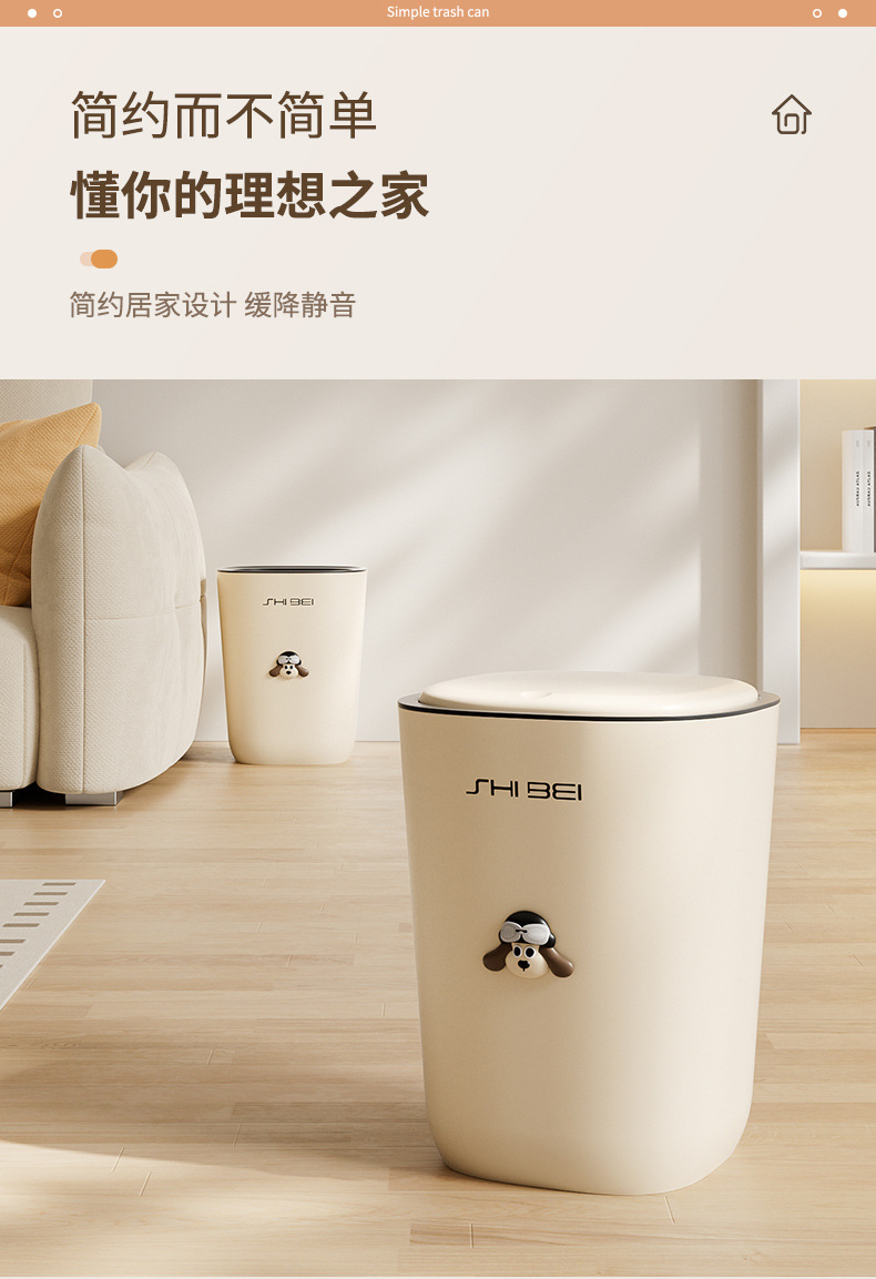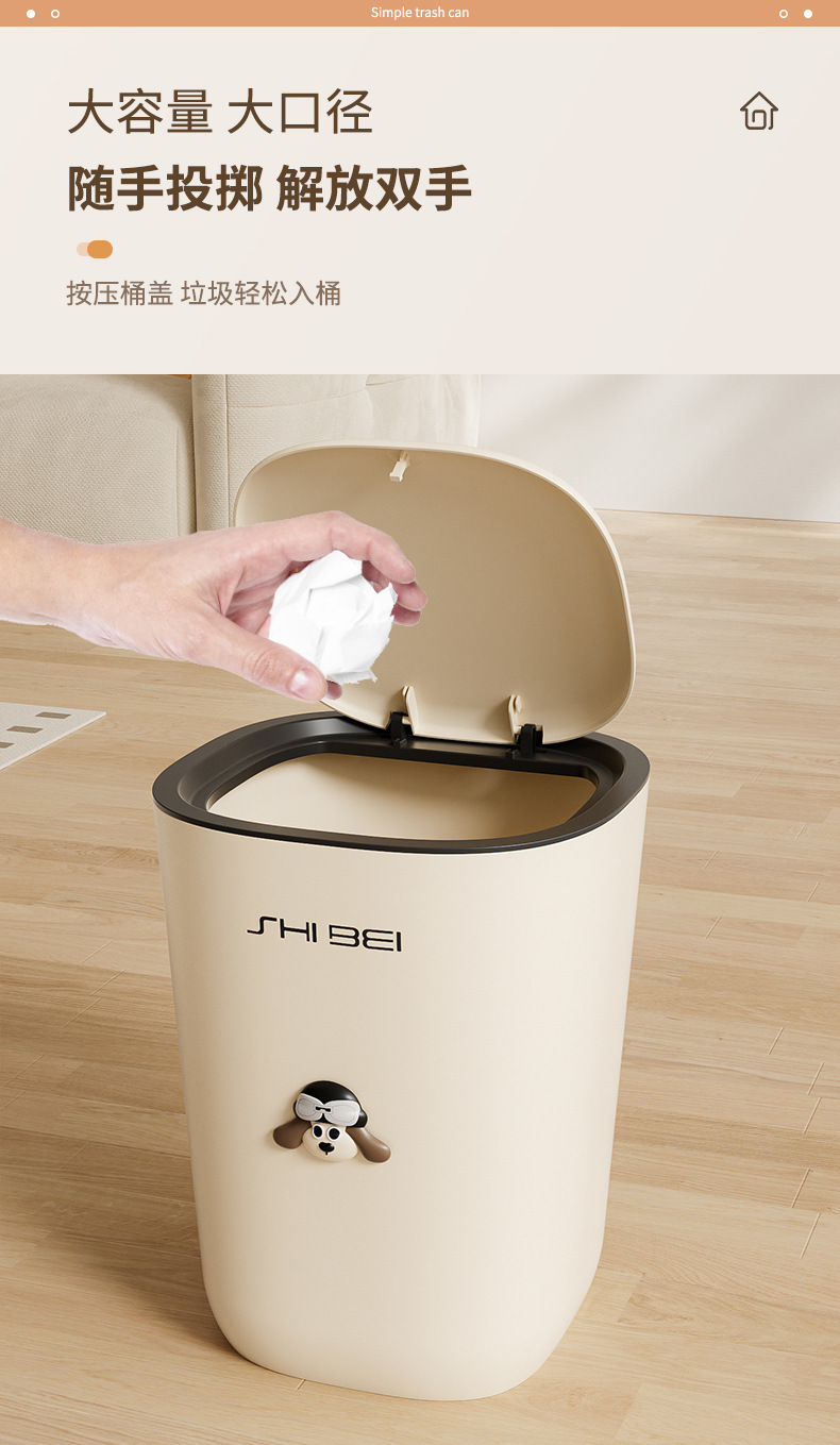 쓰레기통 가정용 2024 새로운 스타일 거실 욕실 주방 프레스 대용량 INS 간단한 쓰레기통 뚜껑 포함
