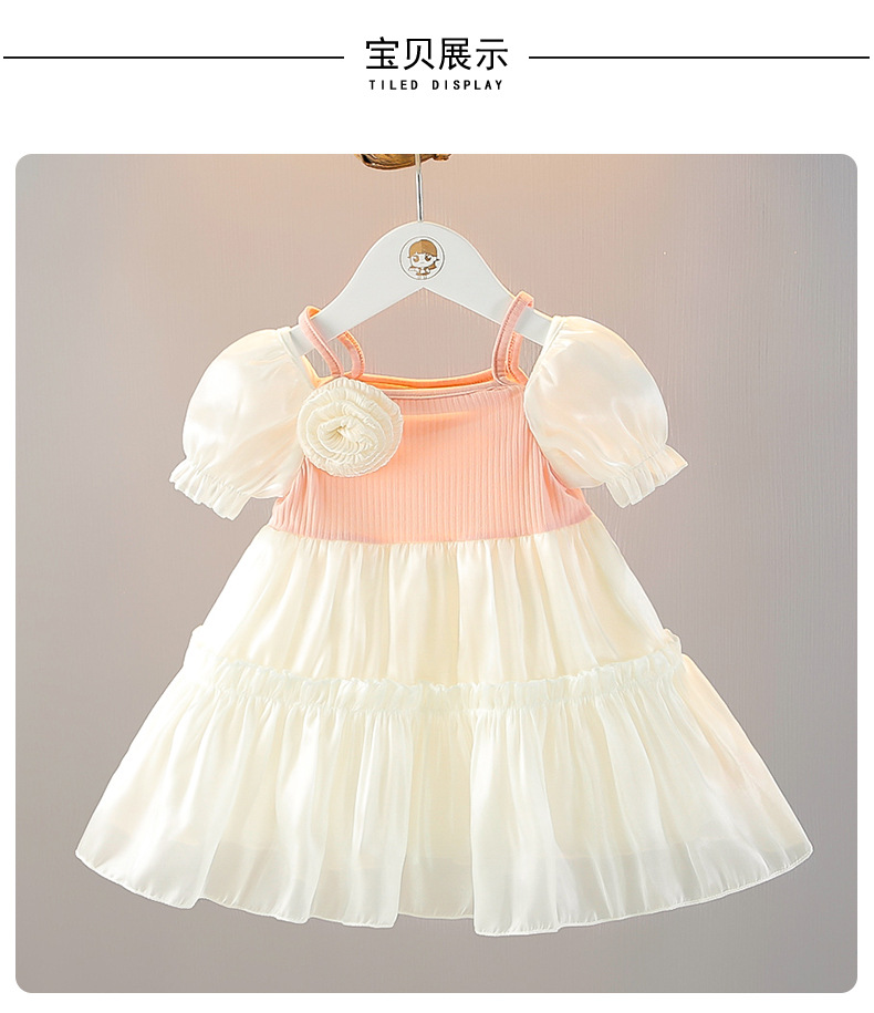 아기 소녀의 여름 서양 스타일 얇은 원피스 소녀의 짧은 소매 베일 원피스 여름 새로운 스타일 소녀의 공주 원피스 트렌디스토어 가기