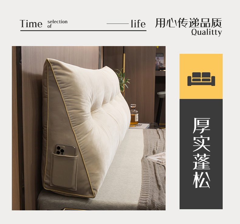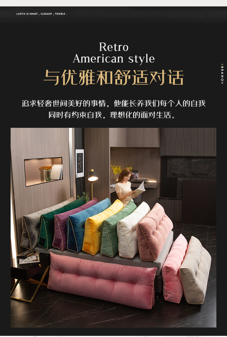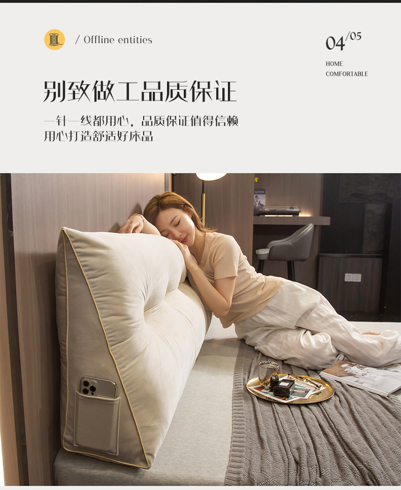 삼각형 침대 옆 베개, 침대 쿠션, 이중 등받이, 푹신한 허리 지지대, 소파, 침실 플러시 천, 탈부착 및 세탁 가능한 침대스토어 가기
