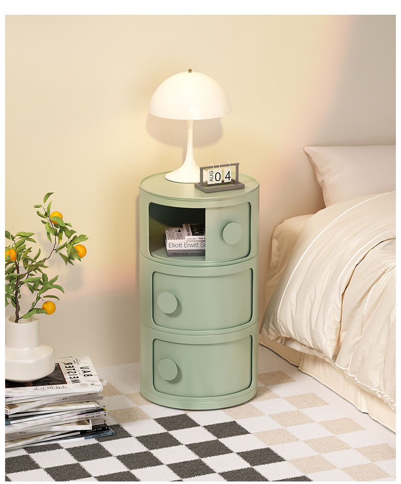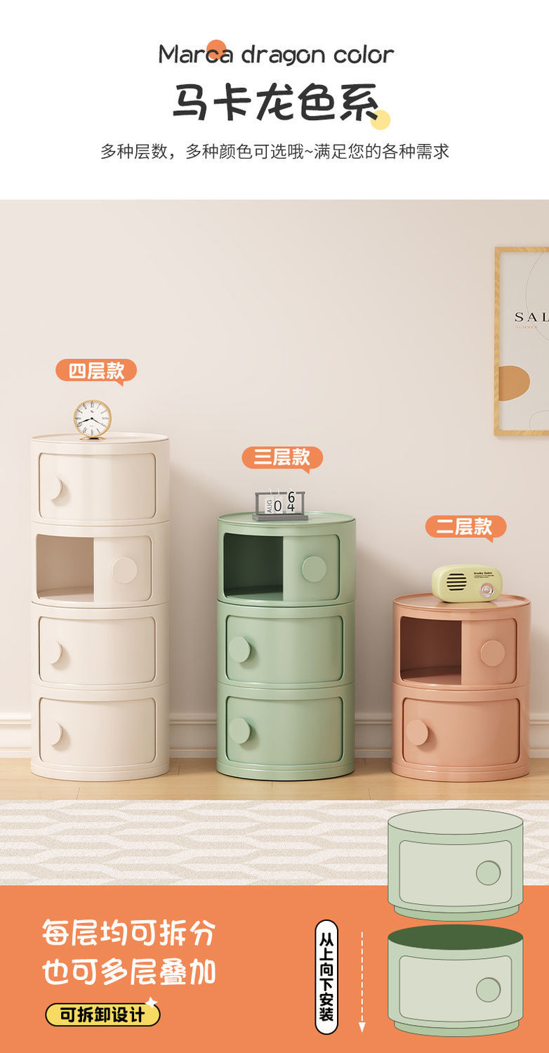 중세 스타일 조합 수납 캐비닛 침대 옆 테이블 컬러 도파민 크림 스타일 어린이 방 다층 수납 캐비닛 손잡이 포함