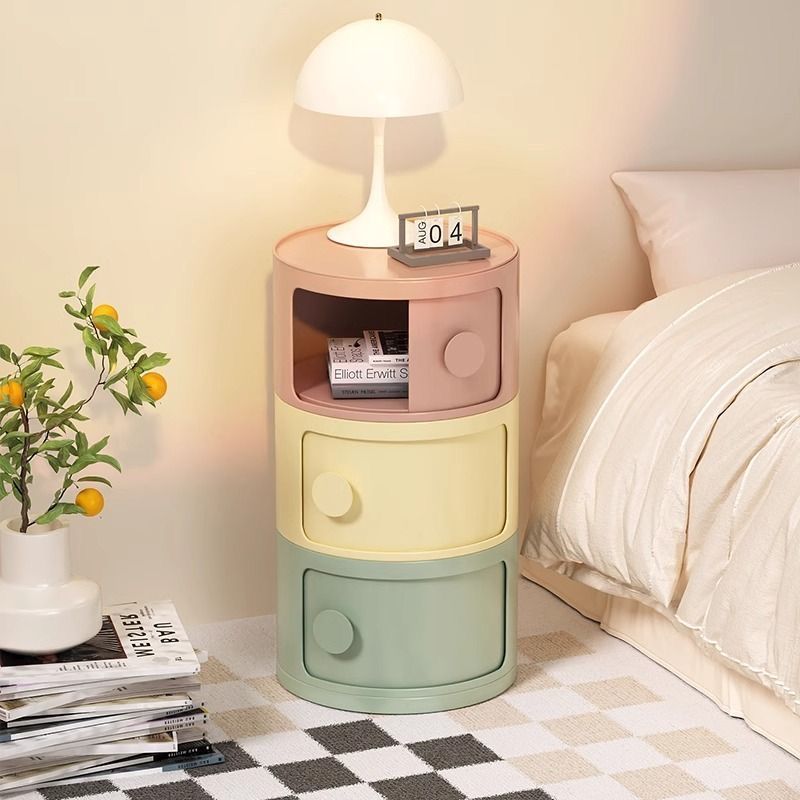 중세 스타일 조합 수납 캐비닛 침대 옆 테이블 컬러 도파민 크림 스타일 어린이 방 다층 수납 캐비닛 손잡이 포함스토어 가기