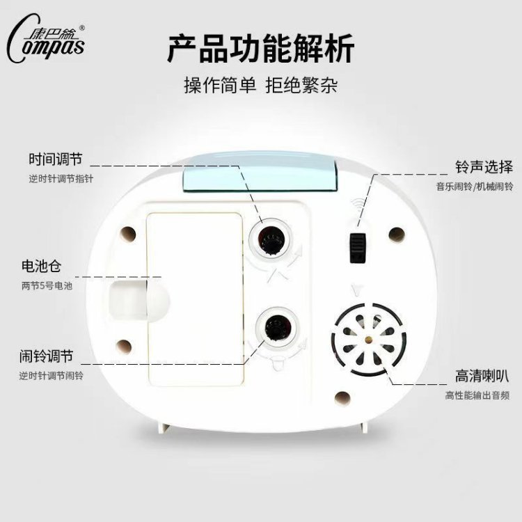 B & mute 더블 음악 알람 시계 학생들을위한 폴라리스 알람 시계 침대 옆 야간 조명 스누즈 큰 글꼴 침실 시계