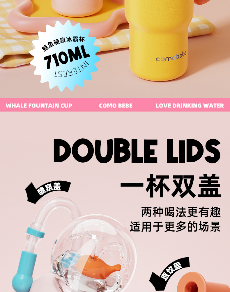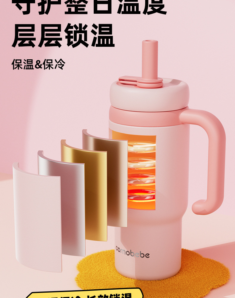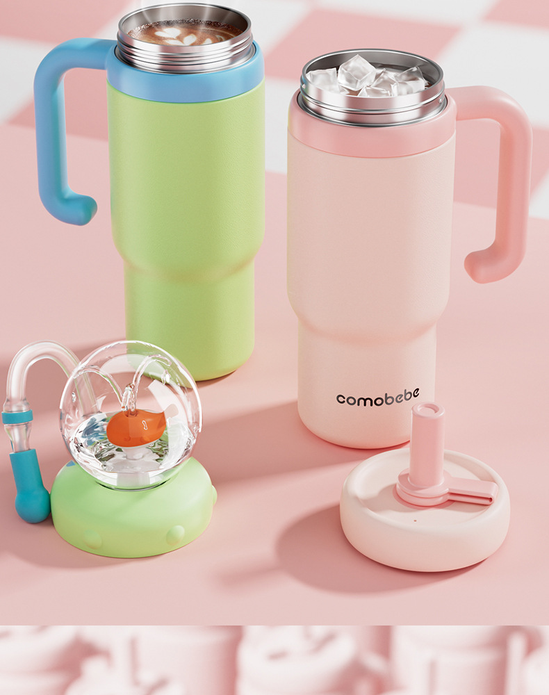 comobebe316 스테인리스 스틸 대용량 아이스컵 차량용 휴대용 고급스러운 디자인 대용량 물분사 보온컵