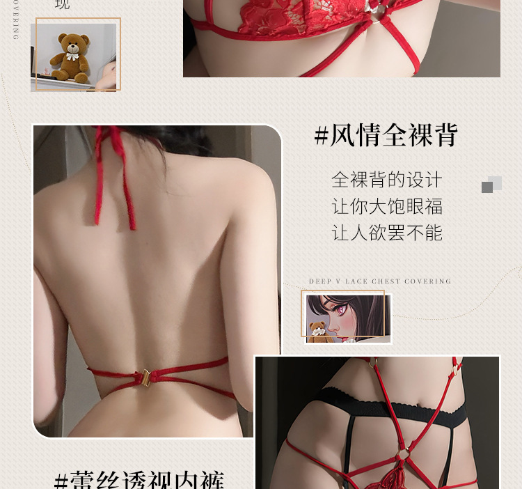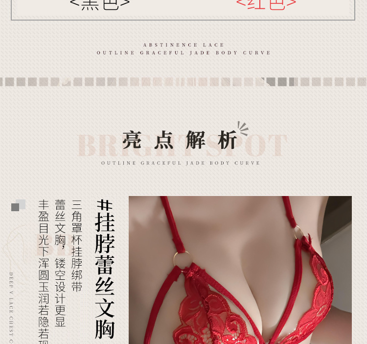 섹시한 3점 푸쉬업 브라, 속이 빈 섹시 속옷 세트, 순수한 욕망 유혹 스트랩, 탈착 불가 속옷 8622스토어 가기