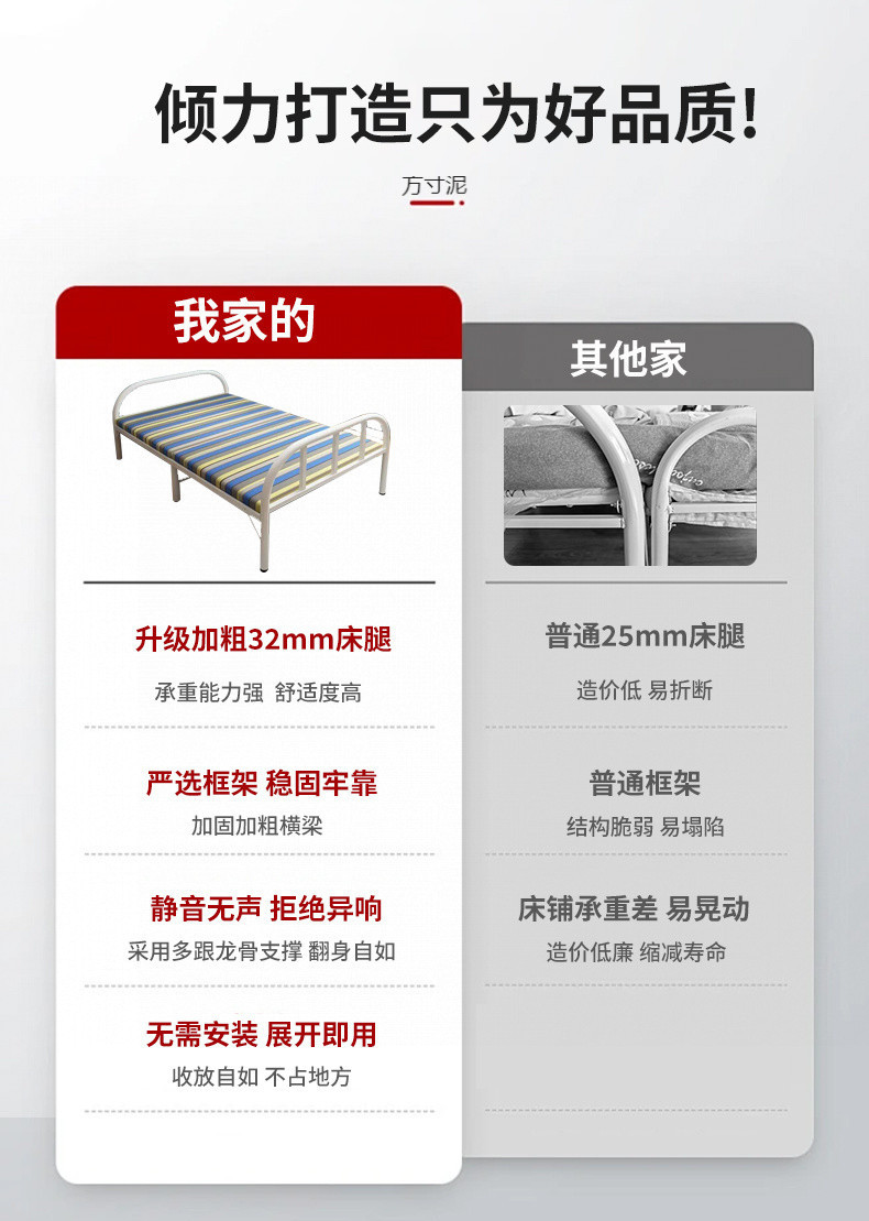 점심시간 휴식용 접이식 침대, 싱글 침대, 낮잠용, 가정용, 사무실용, 간이 간병용, 임대용, 휴대용 철제 침대