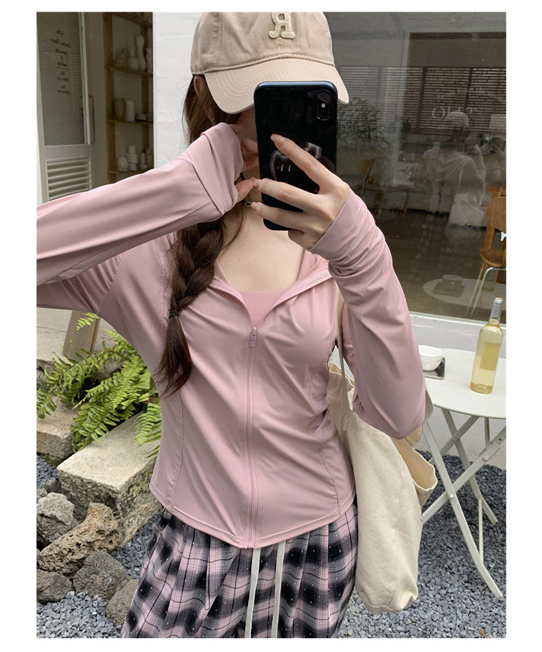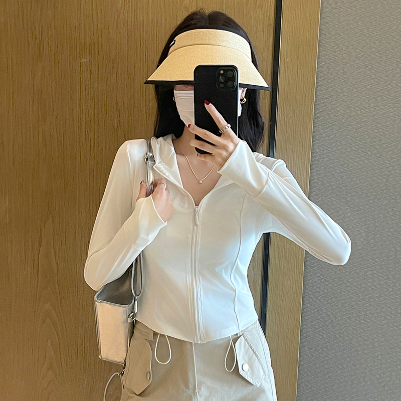 TikTok 품질 블랙 아이스 실크 태양 보호 의류 여름 2025 얇은 슬림 요가 의류 단단한 짧은 코트 태양 보호 의류