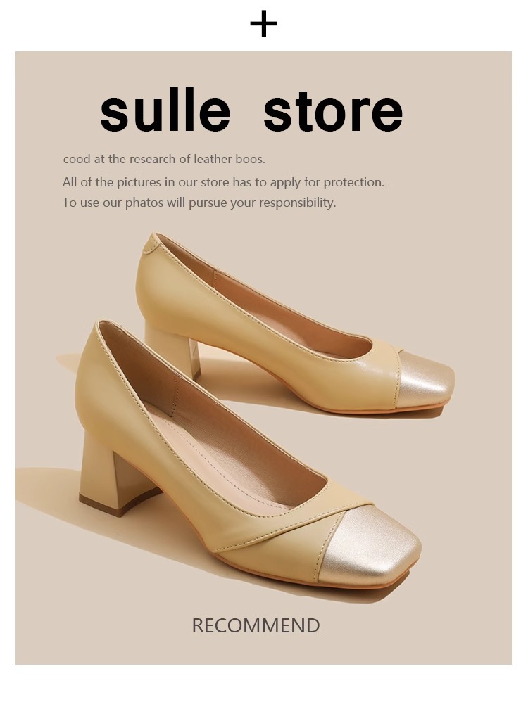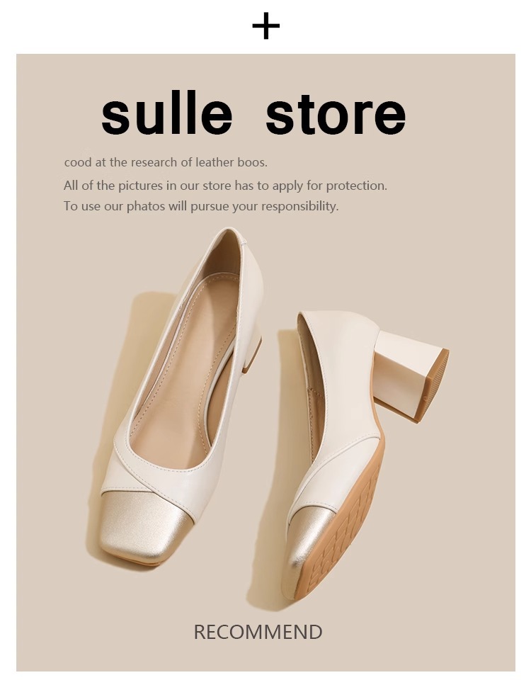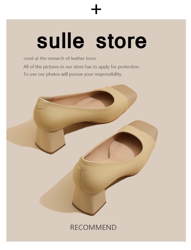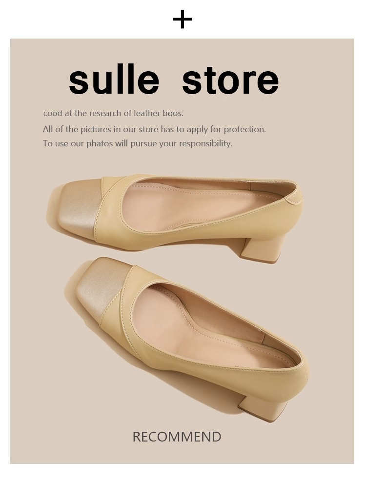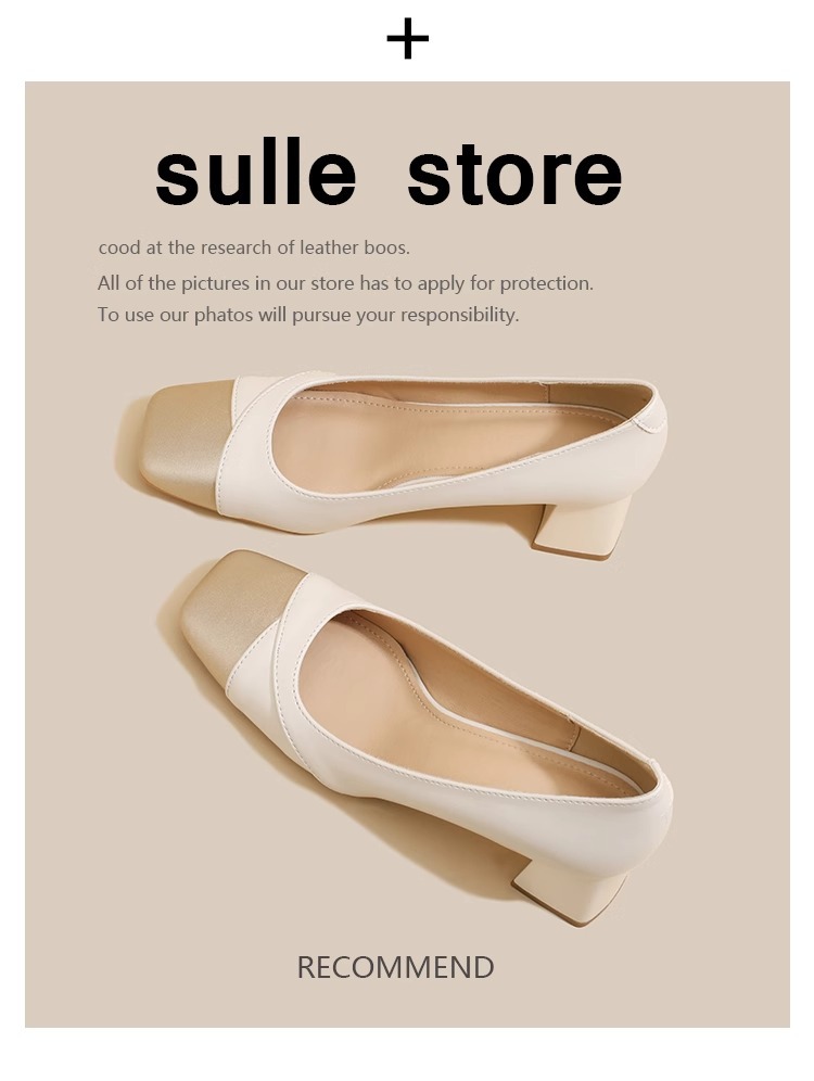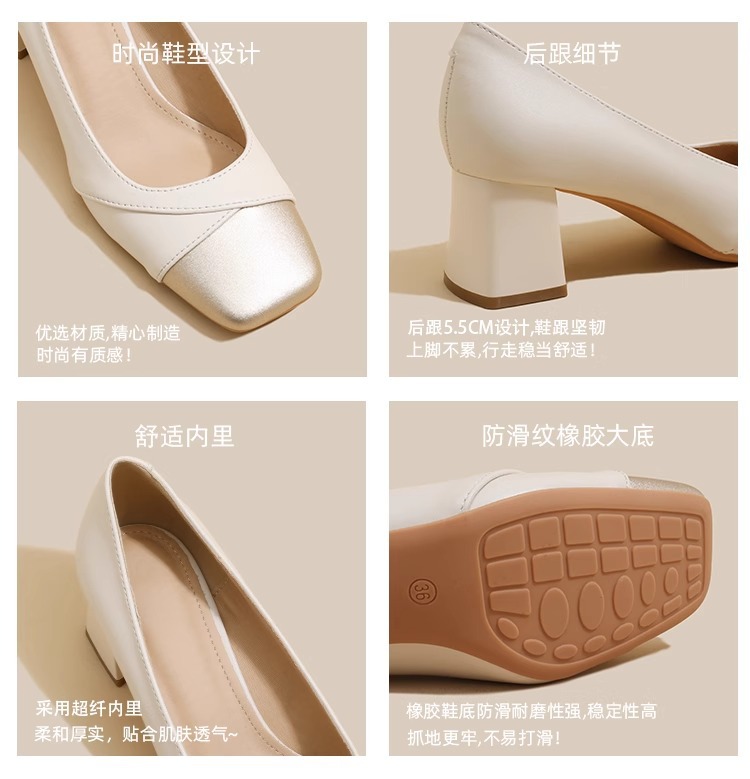 스퀘어 토 두꺼운 힐 신발 여성 2025 새로운 봄 우아한 프랑스 소프트 하단 컬러 블록 작은 샤넬 스타일 얕은 마인드 힐 신발스토어 가기
