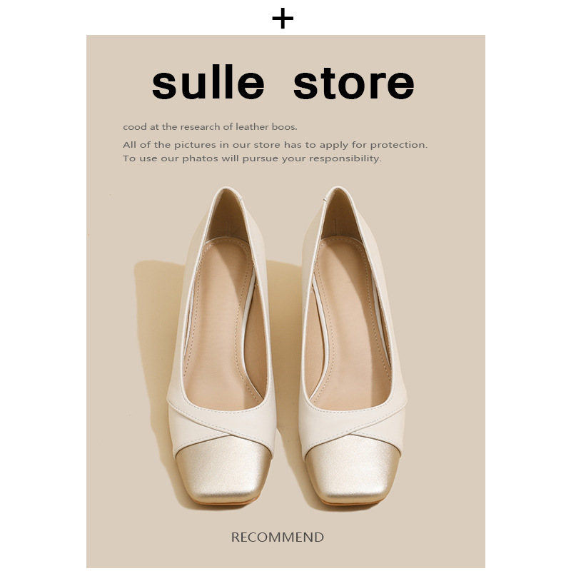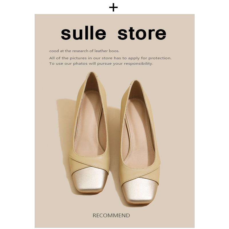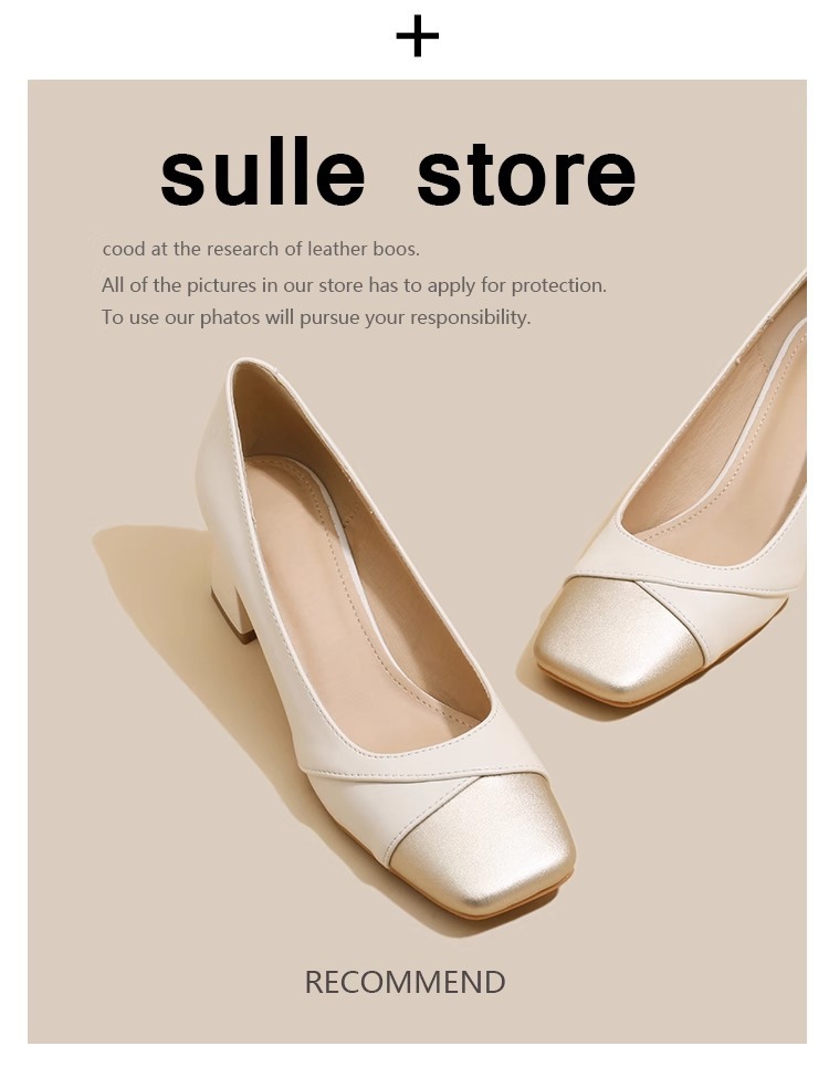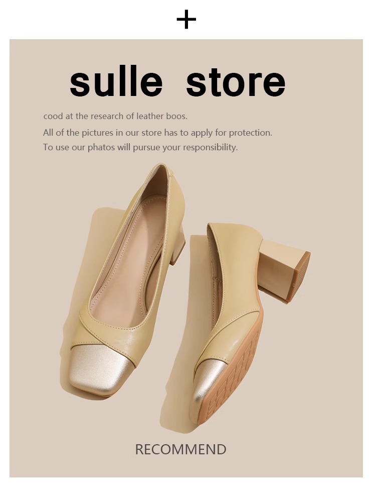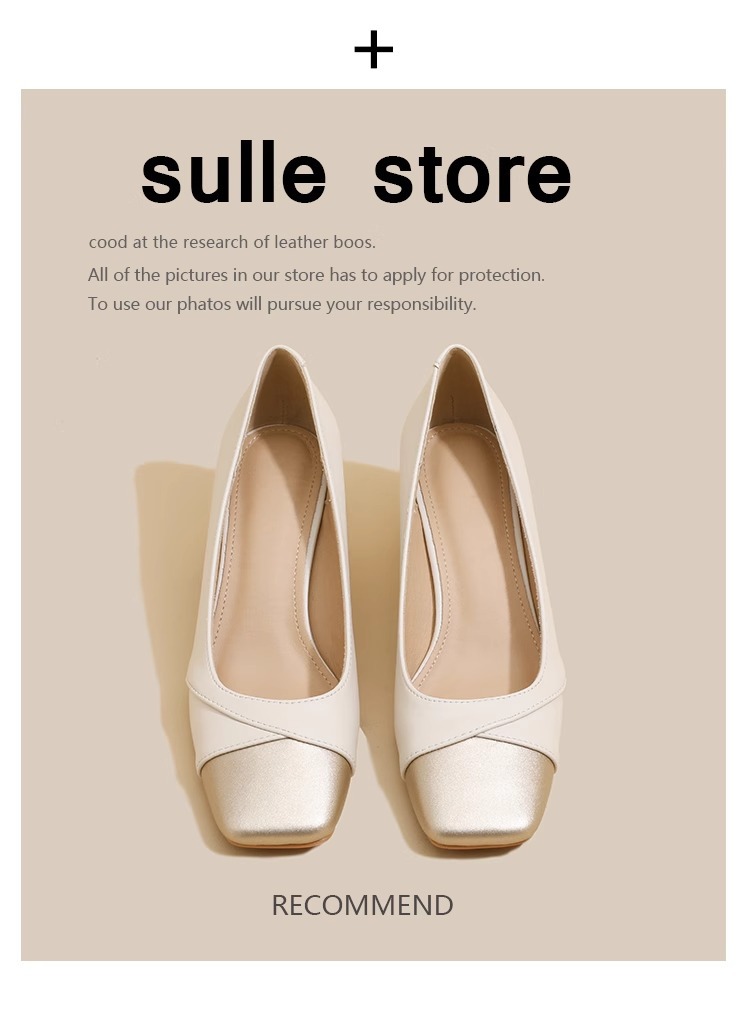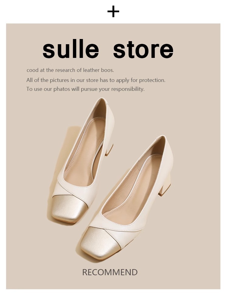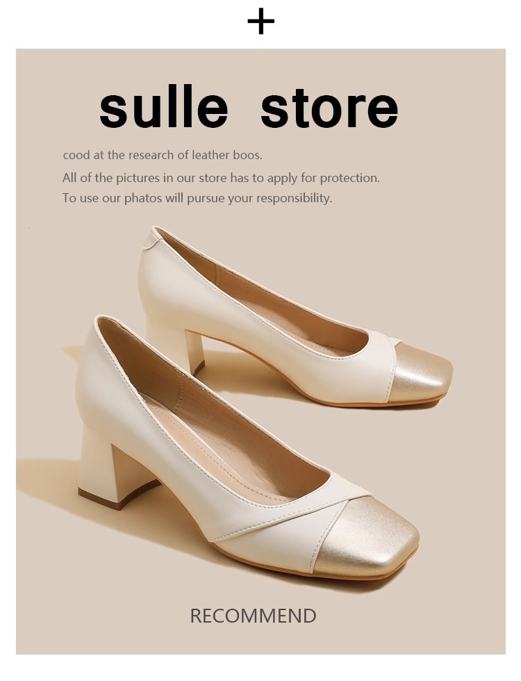 스퀘어 토 두꺼운 힐 신발 여성 2025 새로운 봄 우아한 프랑스 소프트 하단 컬러 블록 작은 샤넬 스타일 얕은 마인드 힐 신발스토어 가기