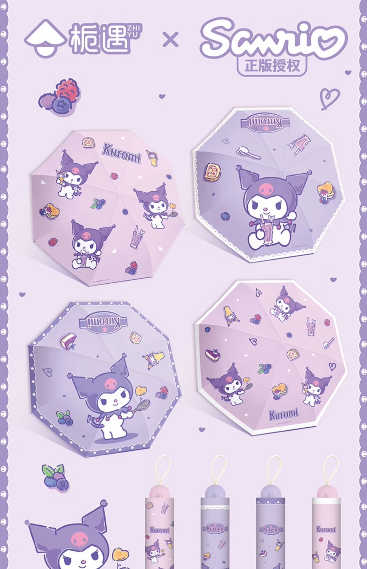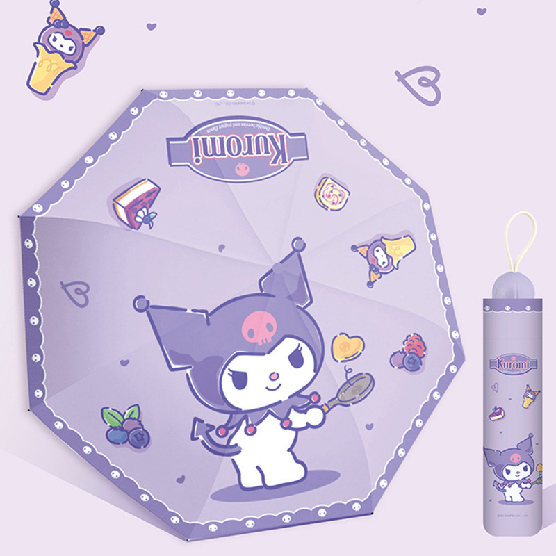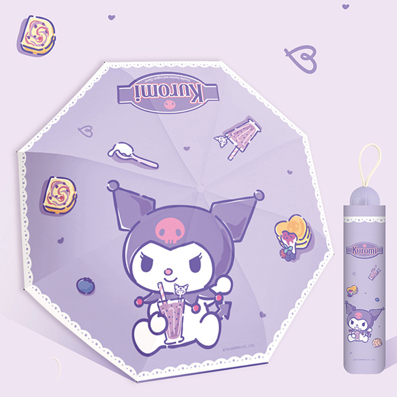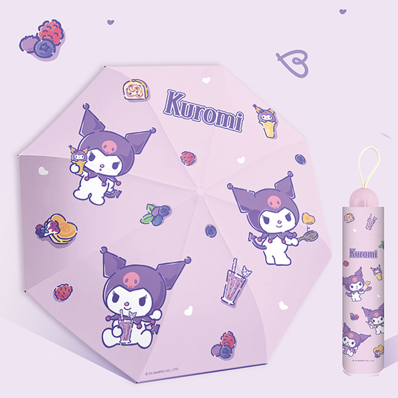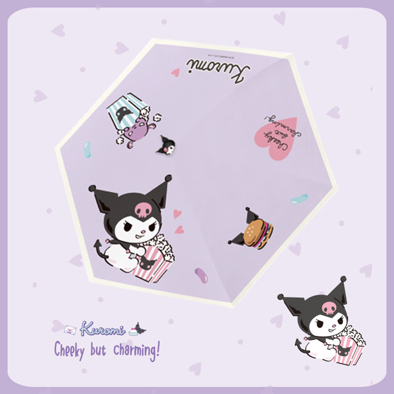 정품 산리오 귀여운 만화 써니 우산 이중 사용 수동 트라이 폴드 8k 우산 쿨라미 블랙 고무 휴대용 접는 우산