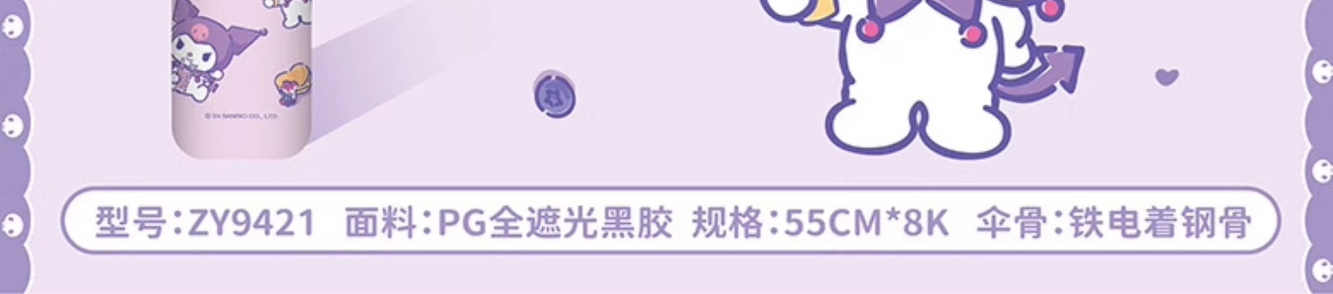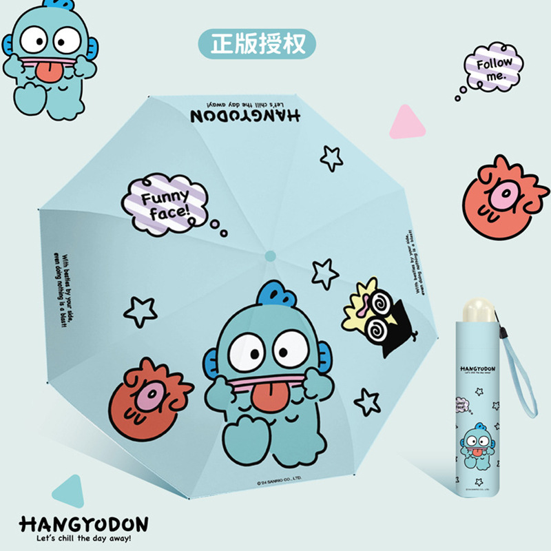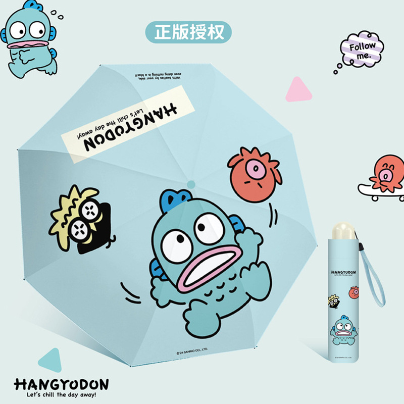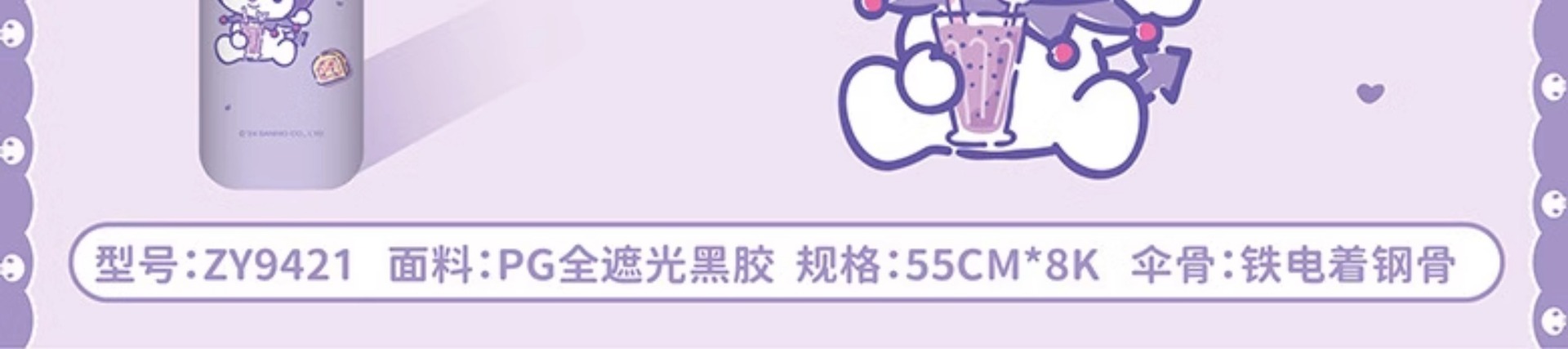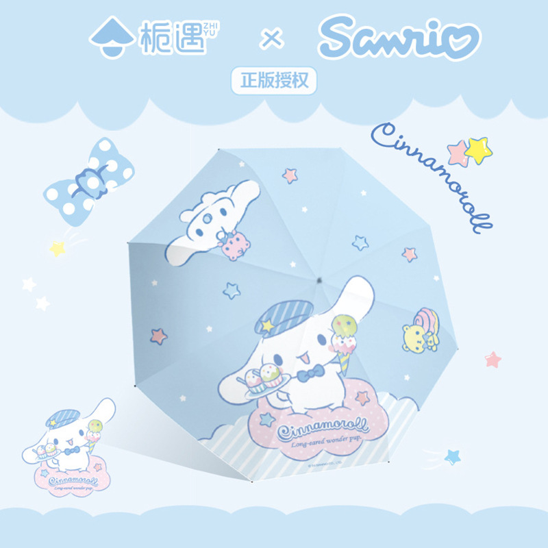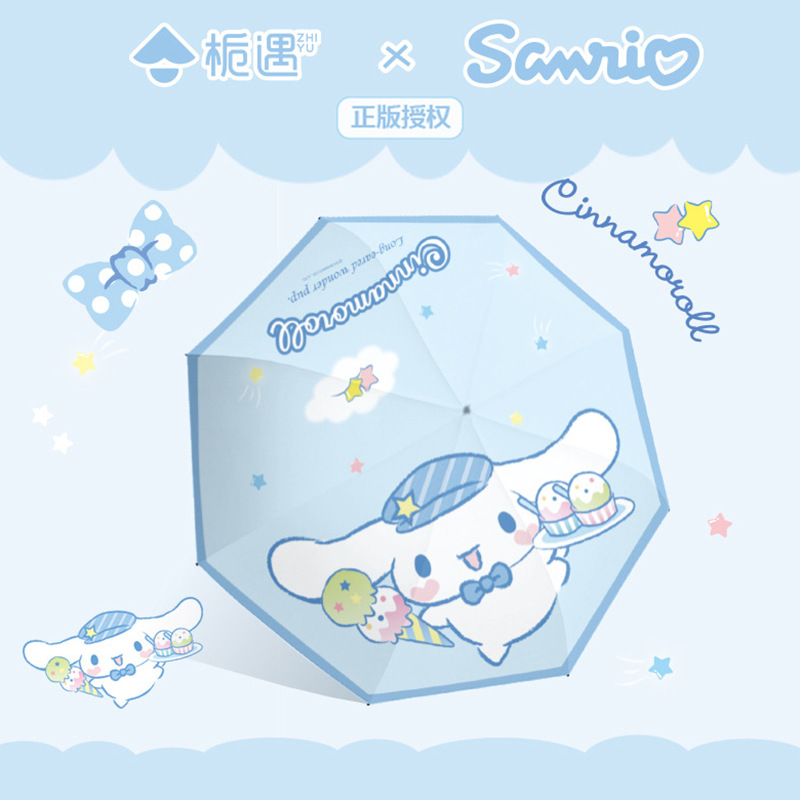 정품 산리오 귀여운 만화 써니 우산 이중 사용 수동 트라이 폴드 8k 우산 쿨라미 블랙 고무 휴대용 접는 우산