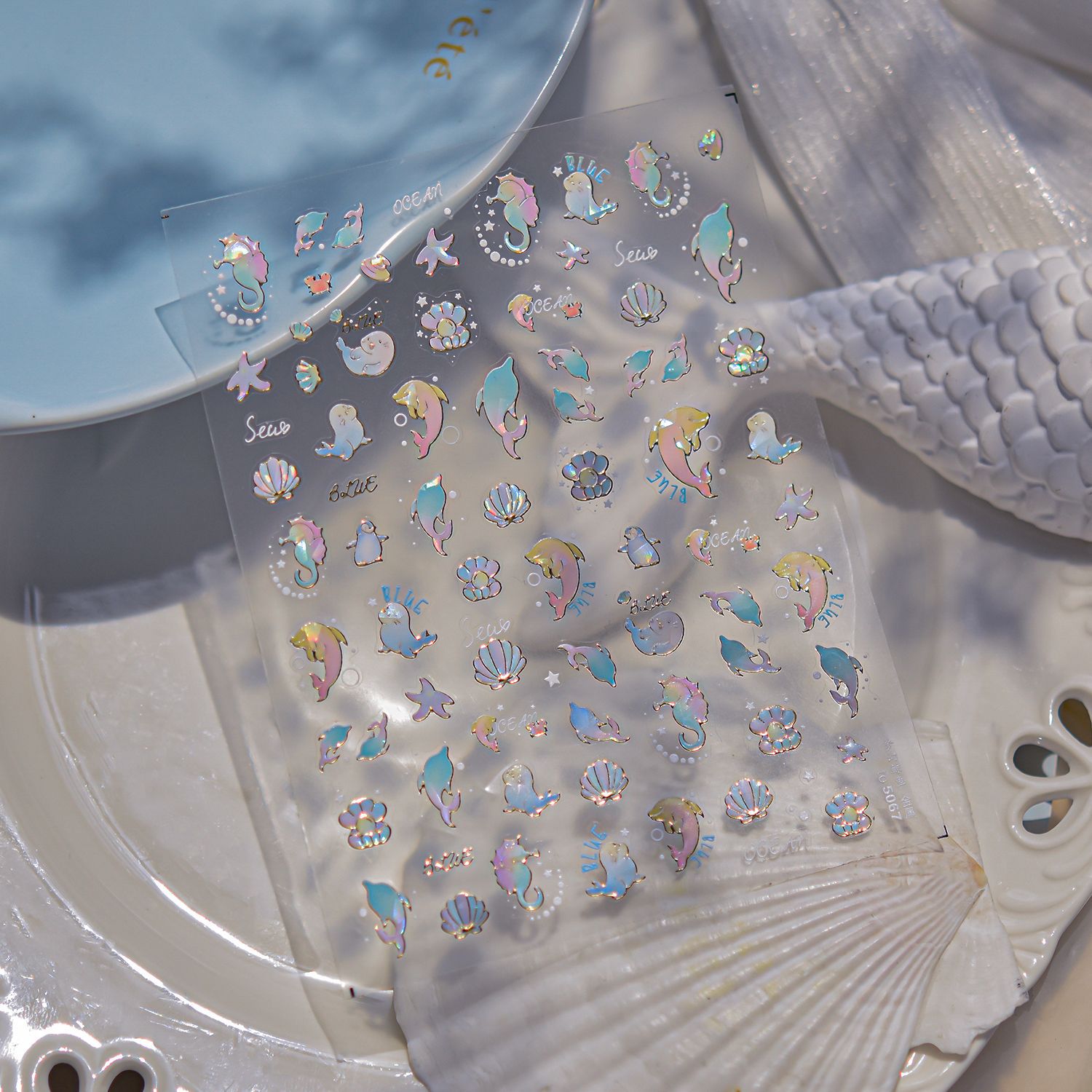 Tomoni 금속 네일 아트 스티커 Diy 폭발 3D 어린이 네일 스티커 꿈꾸는 고래 네일 아트 액세서리