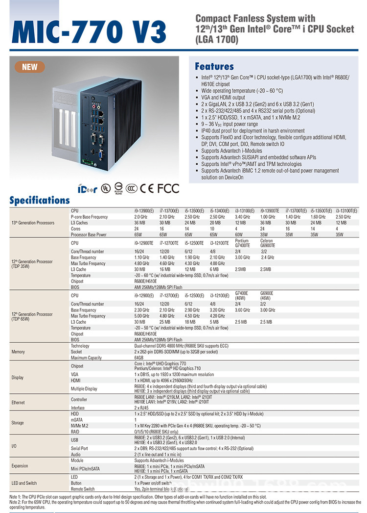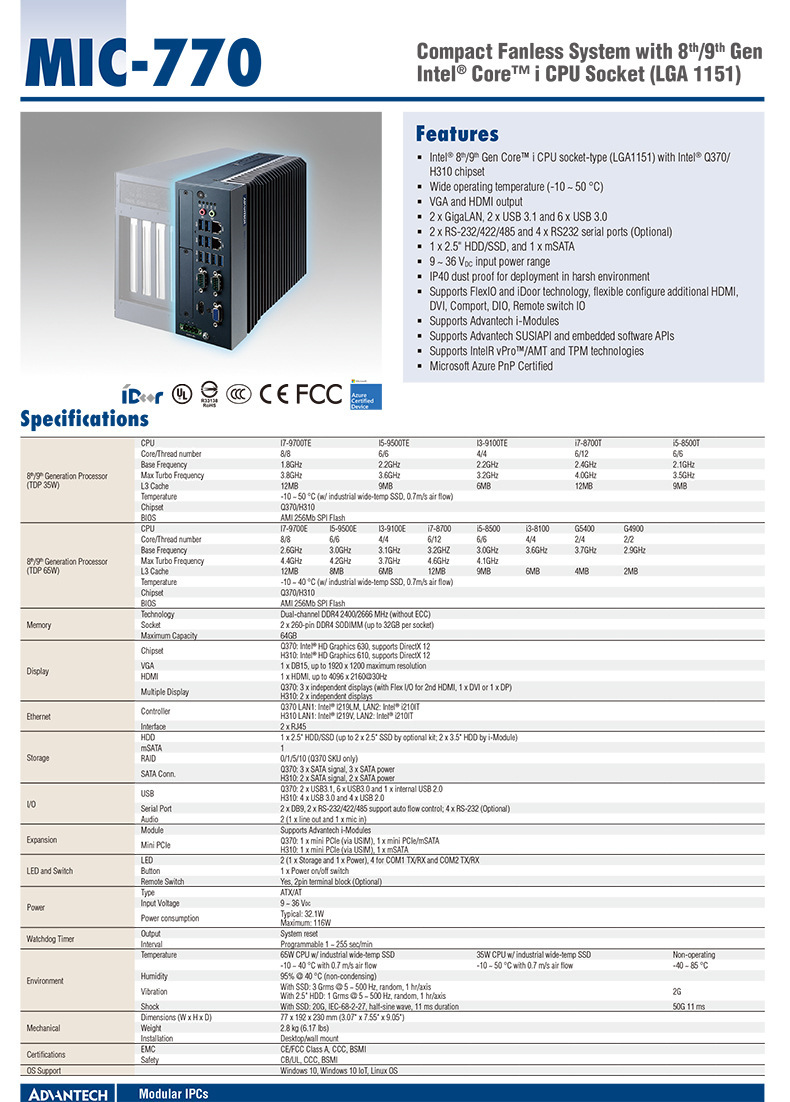 • 어드밴텍 MIC-770(8세대~13세대 옵션)
