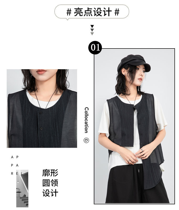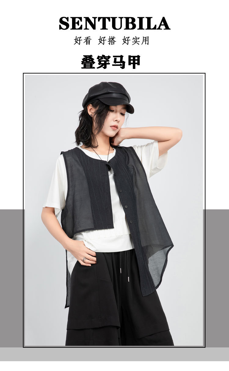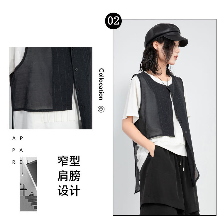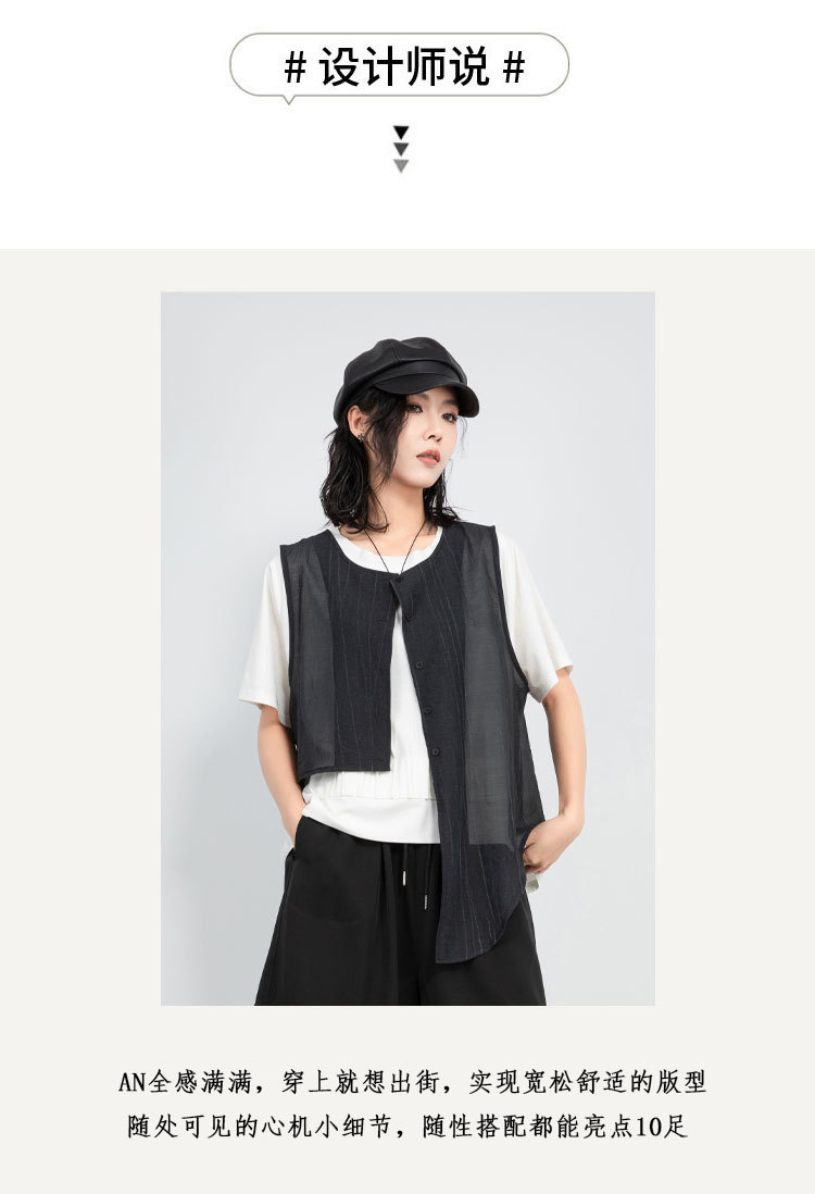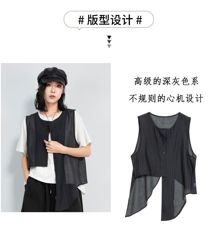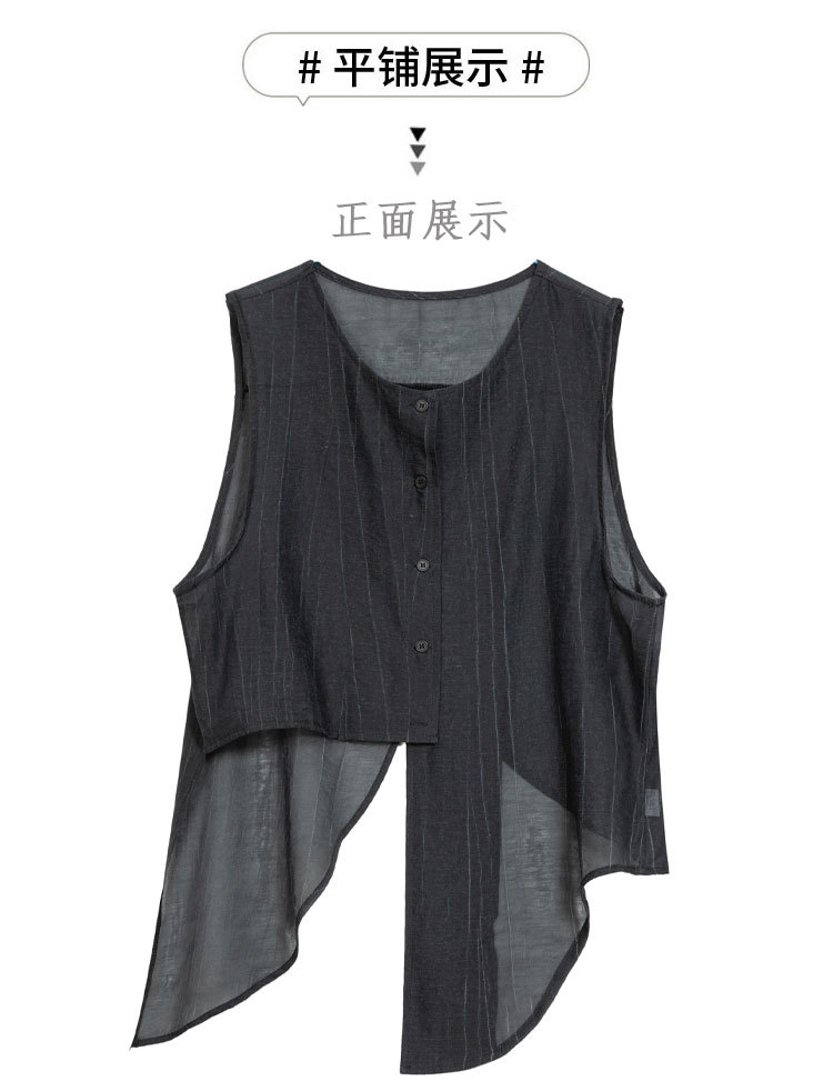 여름 새로운 스타일 서양식 면화 및 리넨 조끼 우아한 통근자 스택 작은 신선한 등 분할 여성용 불규칙한 조끼스토어 가기