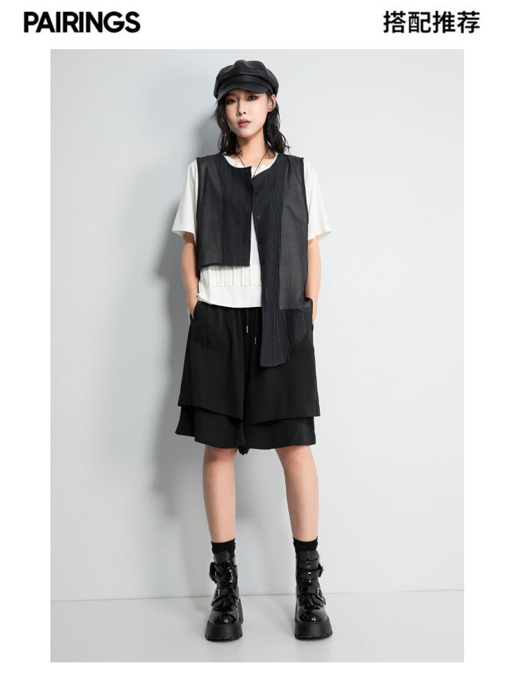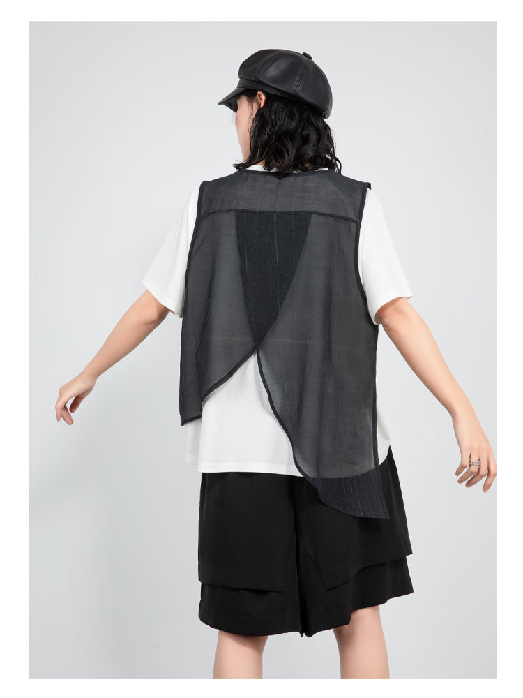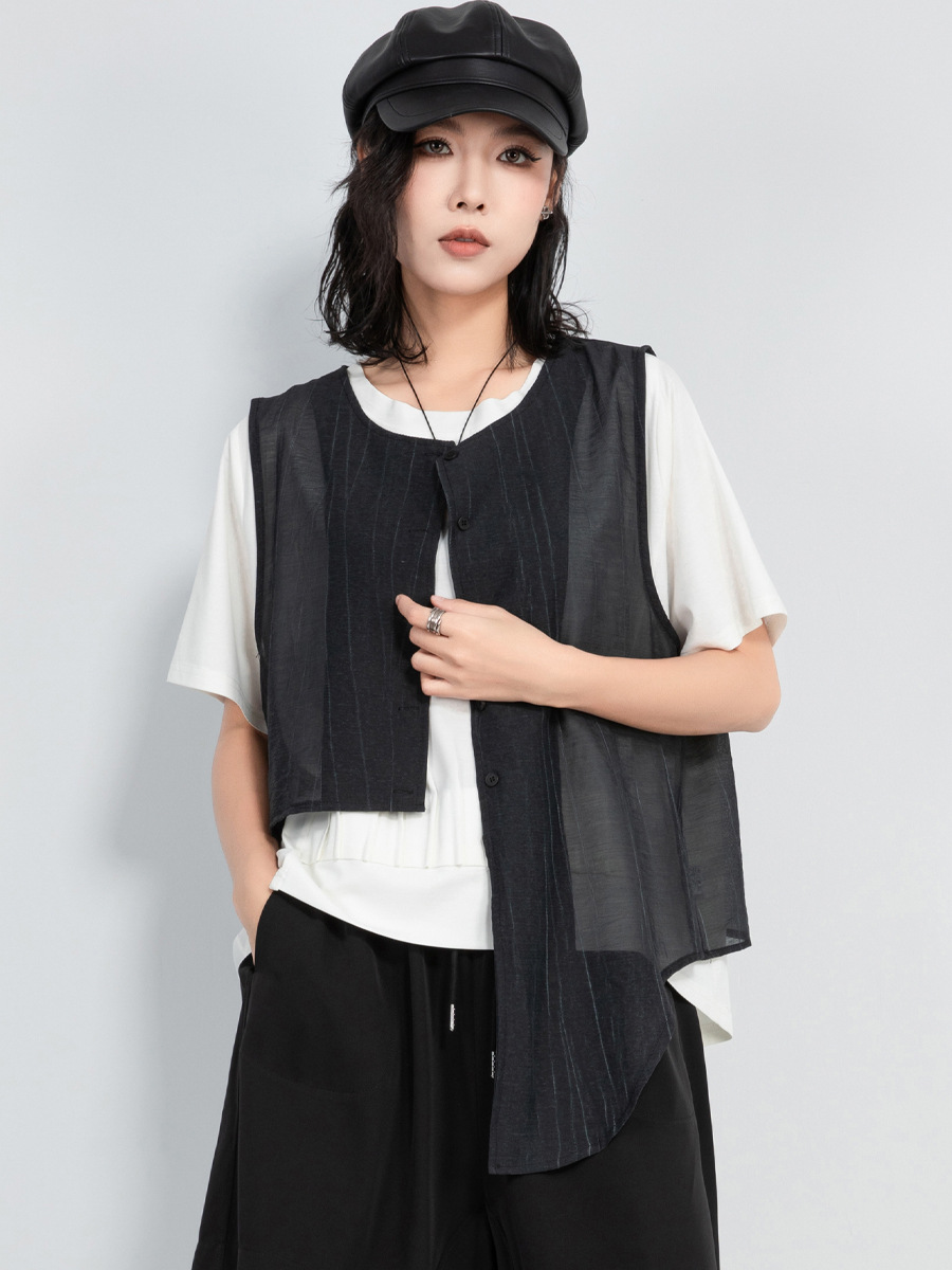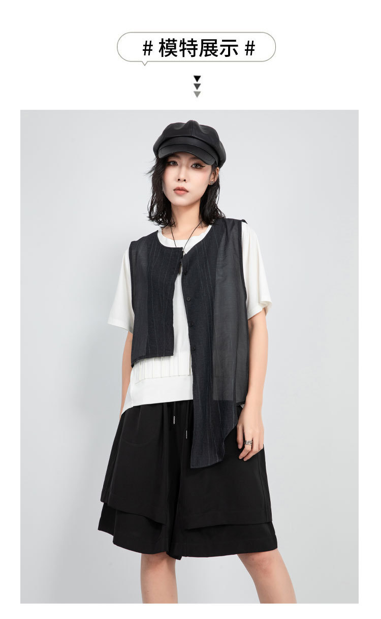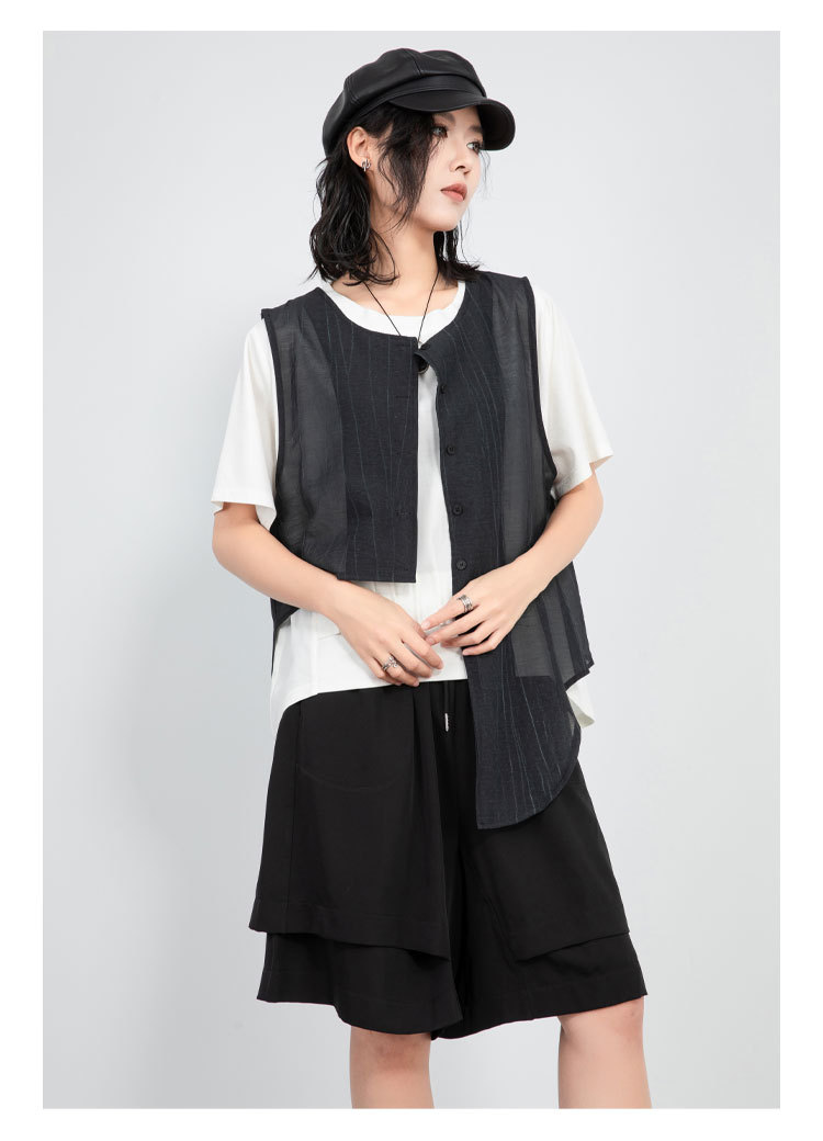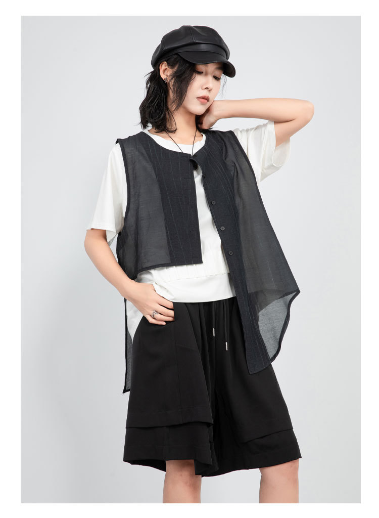 여름 새로운 스타일 서양식 면화 및 리넨 조끼 우아한 통근자 스택 작은 신선한 등 분할 여성용 불규칙한 조끼스토어 가기