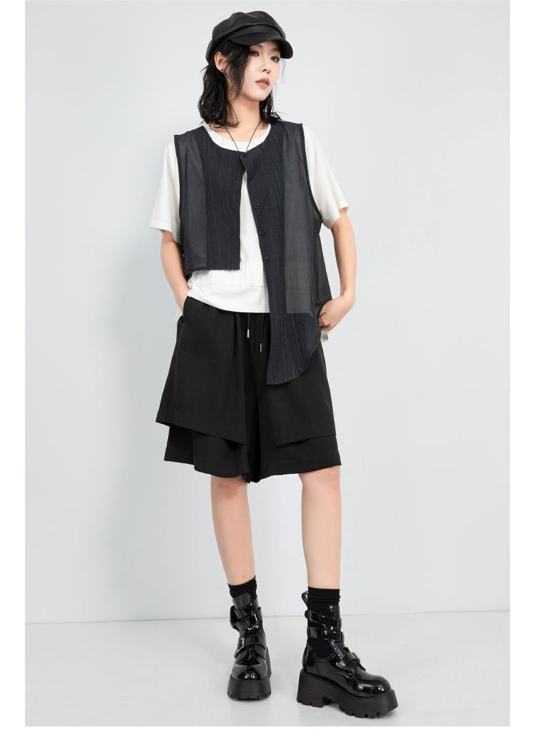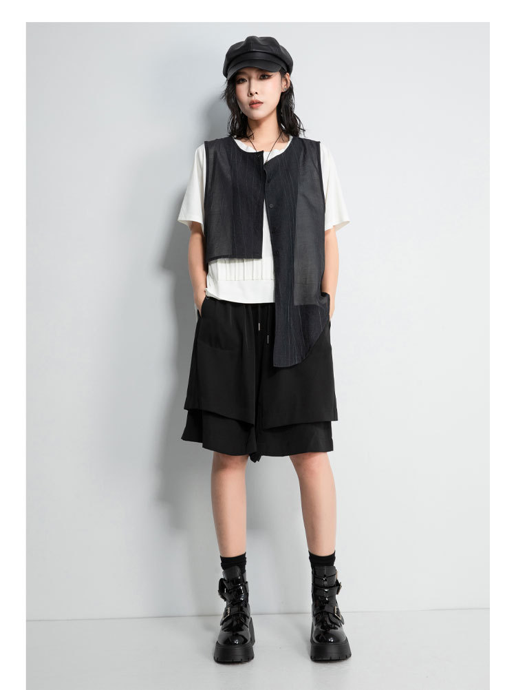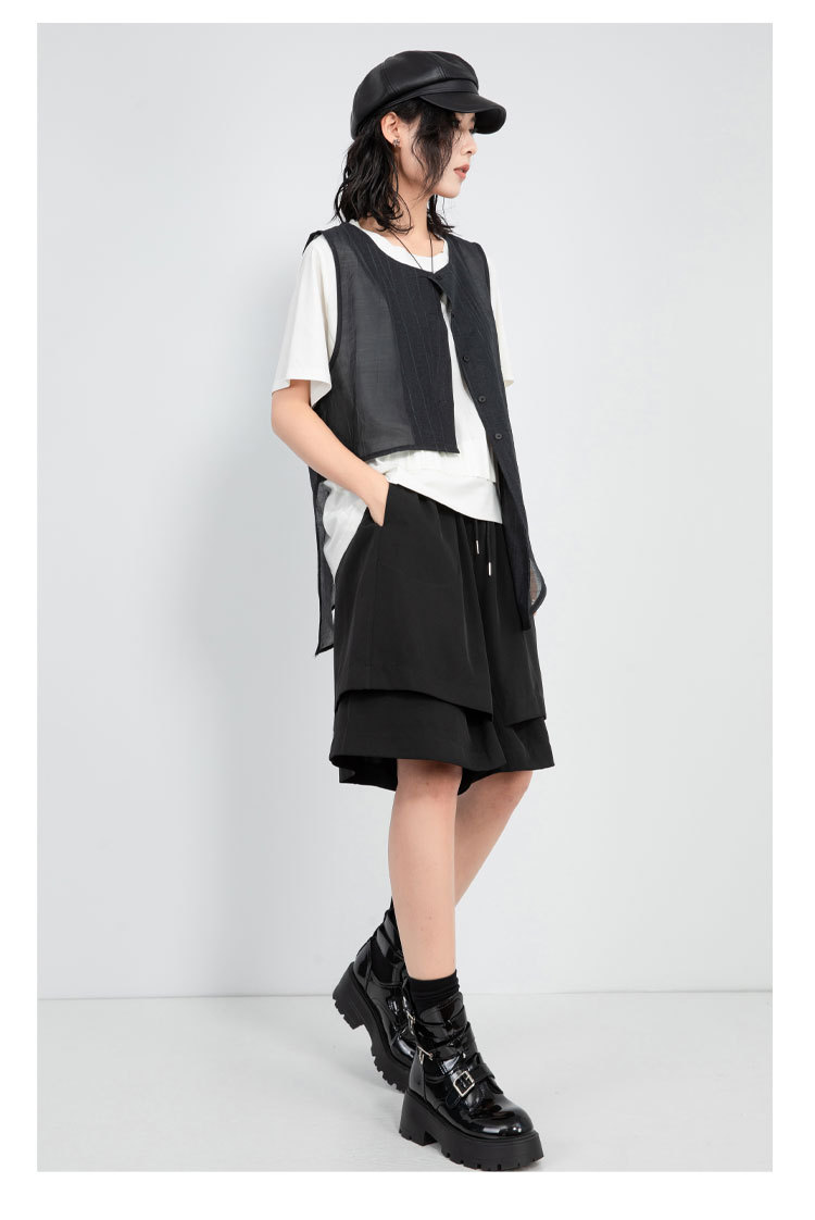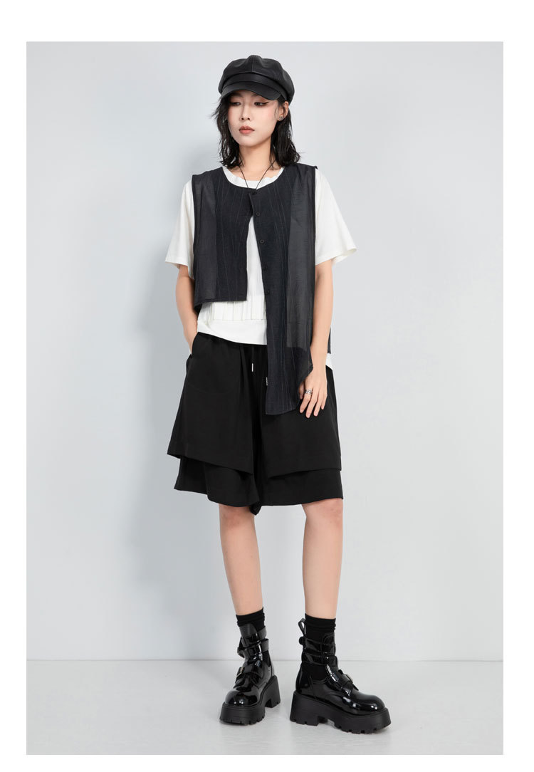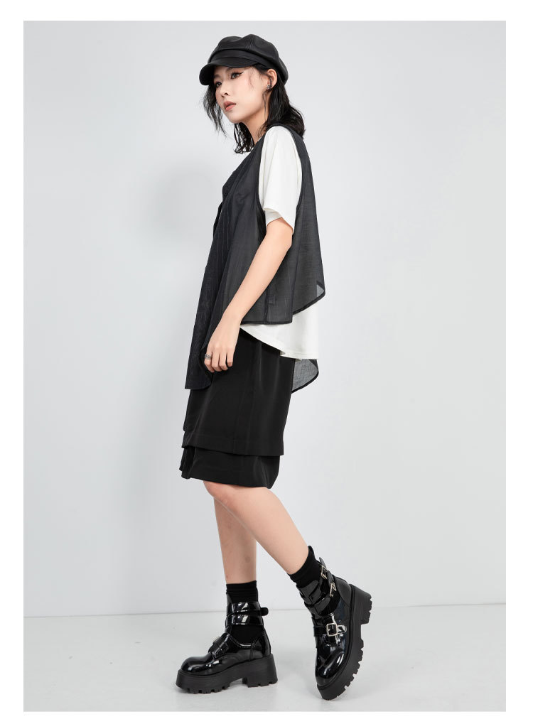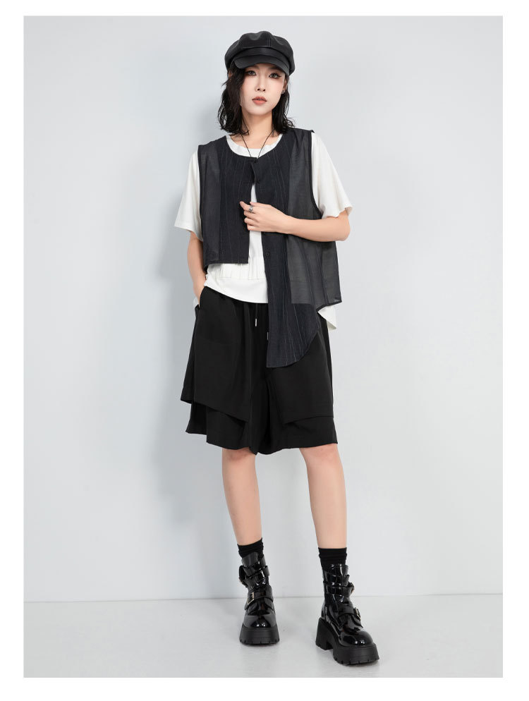 여름 새로운 스타일 서양식 면화 및 리넨 조끼 우아한 통근자 스택 작은 신선한 등 분할 여성용 불규칙한 조끼스토어 가기
