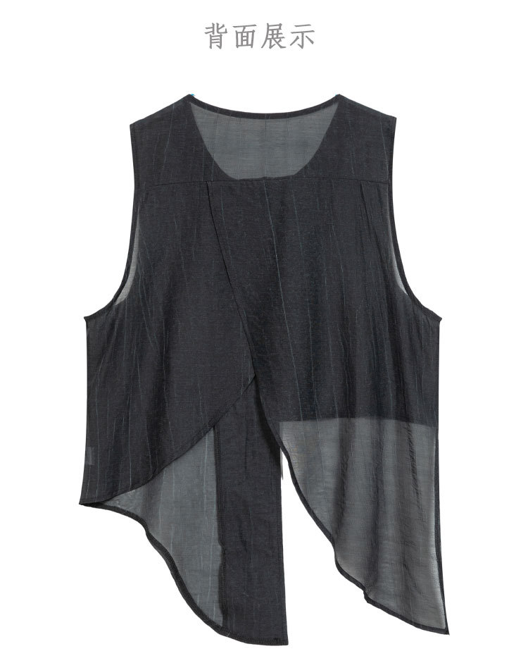 여름 새로운 스타일 서양식 면화 및 리넨 조끼 우아한 통근자 스택 작은 신선한 등 분할 여성용 불규칙한 조끼