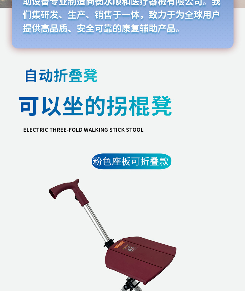 노인을 위한 미끄럼 방지 벨트 스툴이 있는 새로운 원클릭 자동 접이식 지팡이 의자, 야외 접이식 휴대용 지팡이 의자