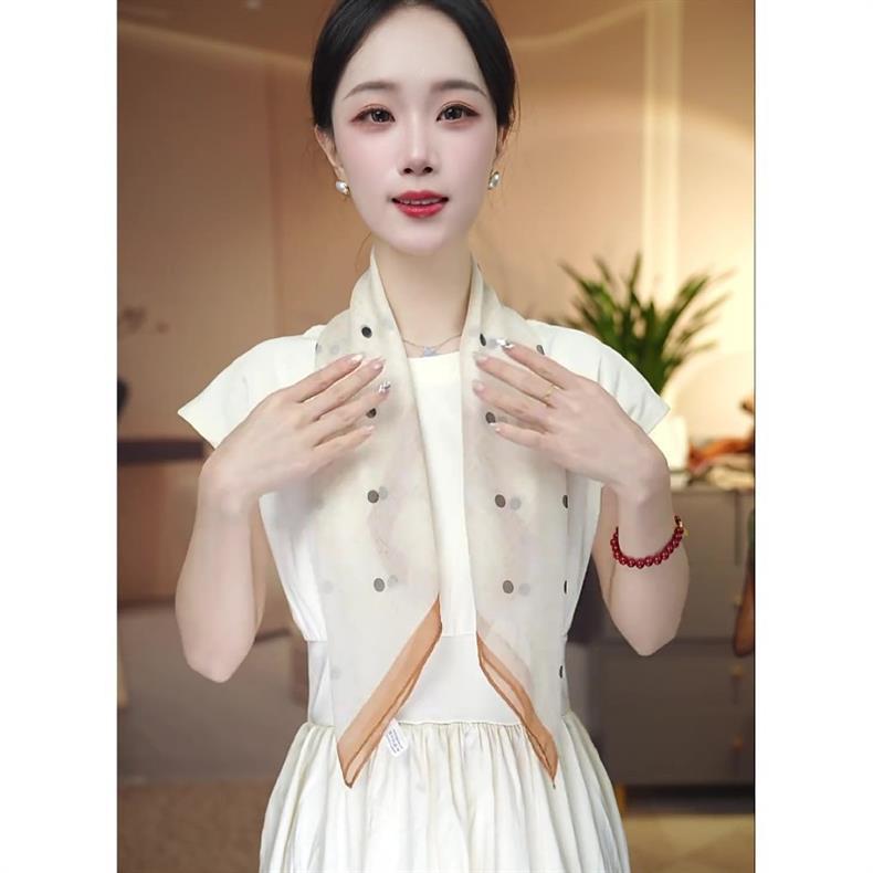 Xili 원사 70*70 또는 정사각형 수건 여름 작은 사각형 수건 흰색 버튼 2025 여름스토어 가기