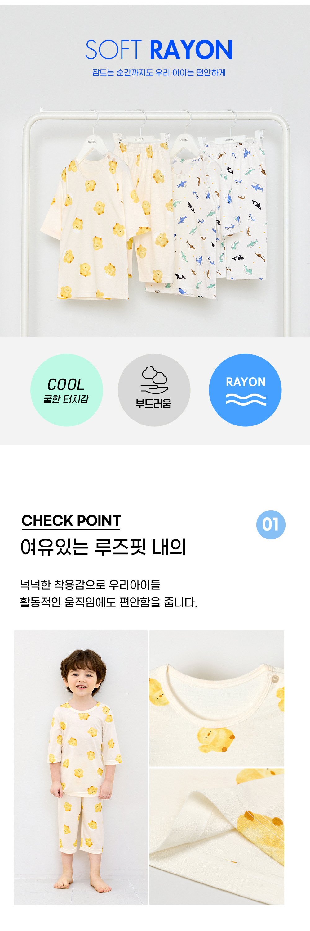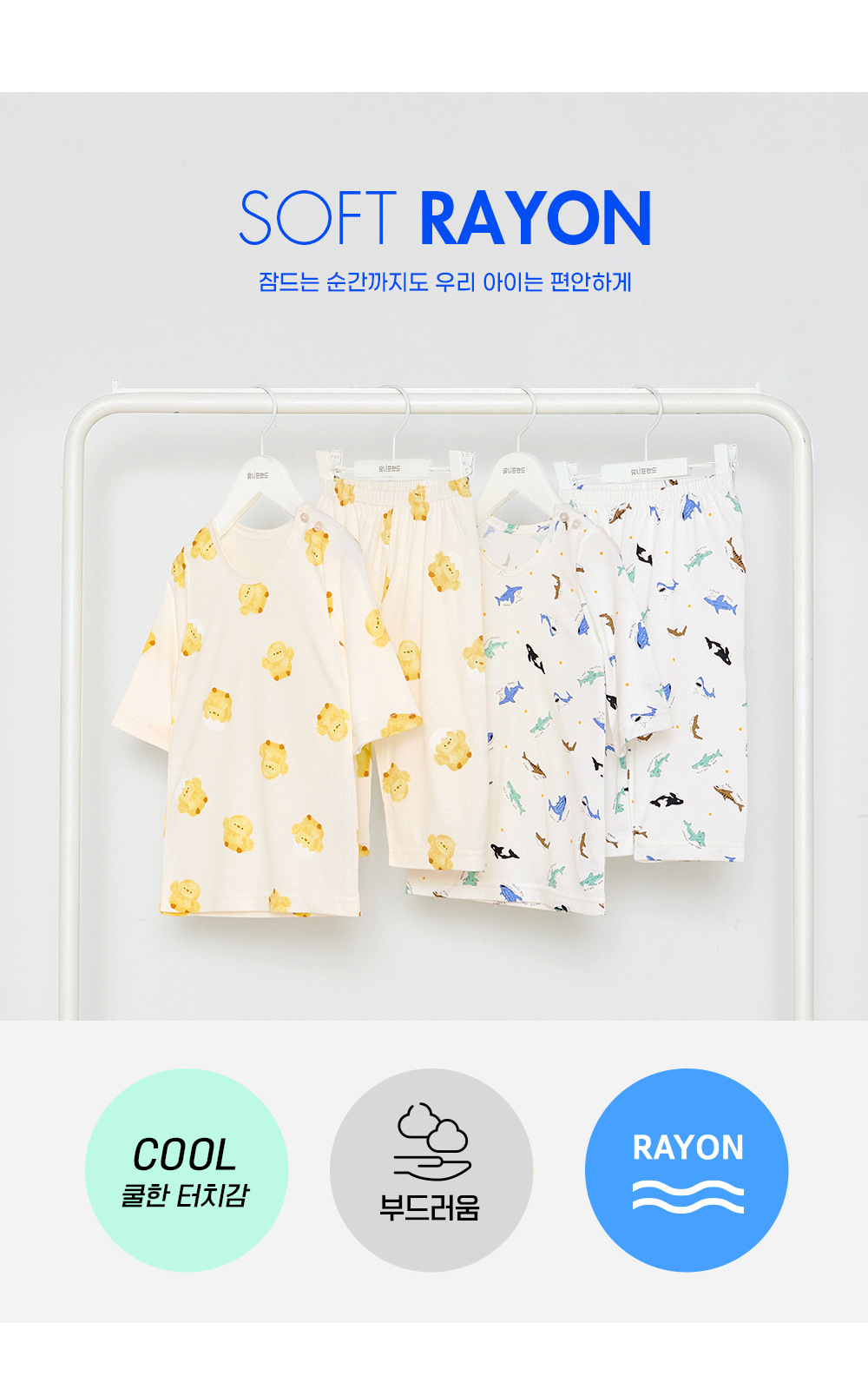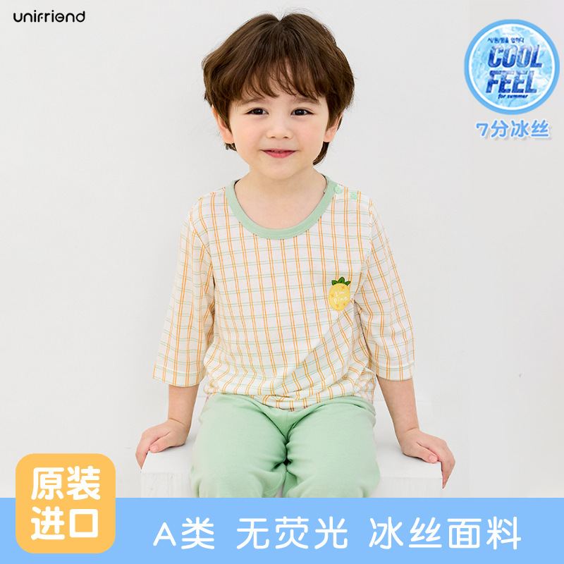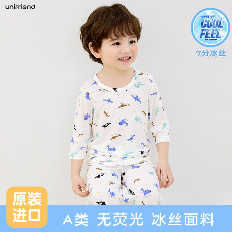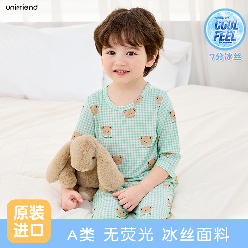 Unifriend 여름 새 어린이 가정 의류 소년 7 점 소매 얼음 실크 정장 소녀 잠옷 만화 카테고리 A스토어 가기
