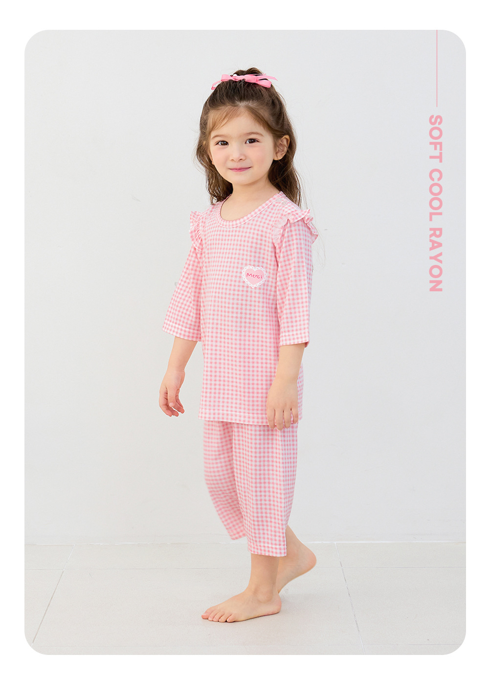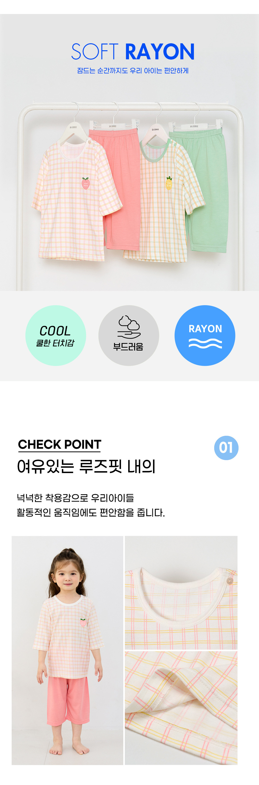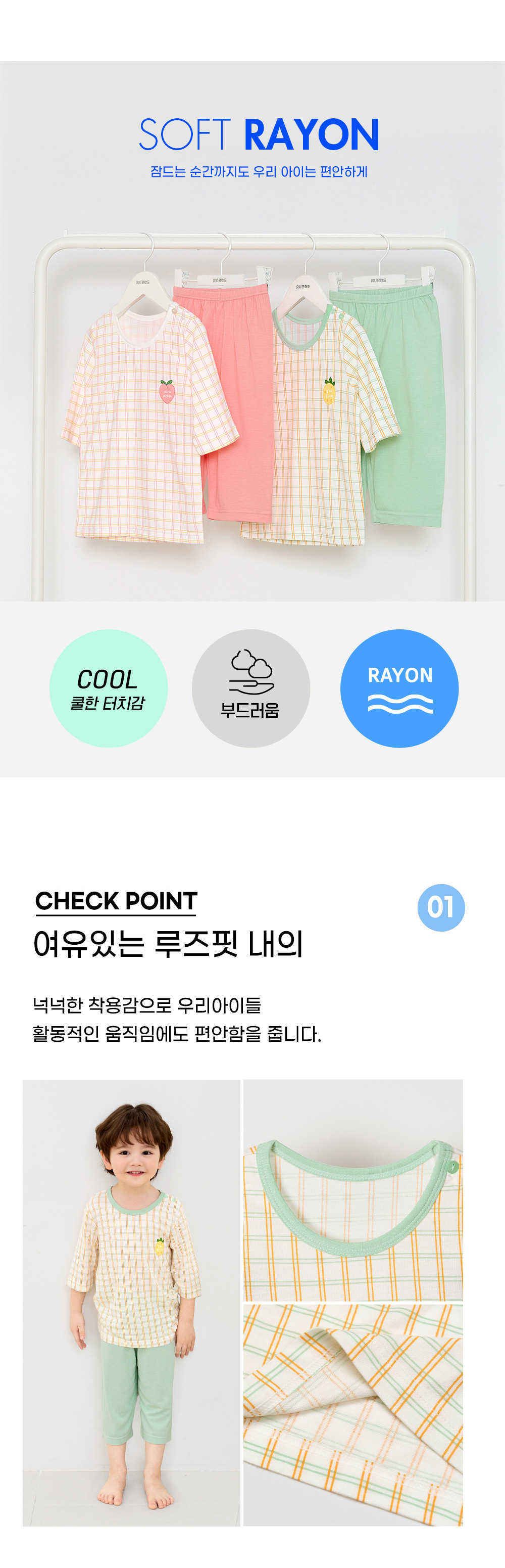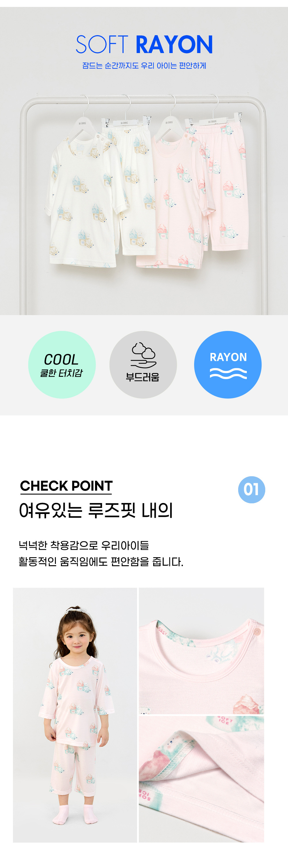 Unifriend 여름 새 어린이 가정 의류 소년 7 점 소매 얼음 실크 정장 소녀 잠옷 만화 카테고리 A스토어 가기