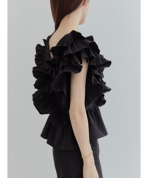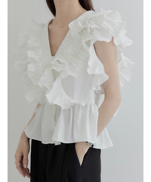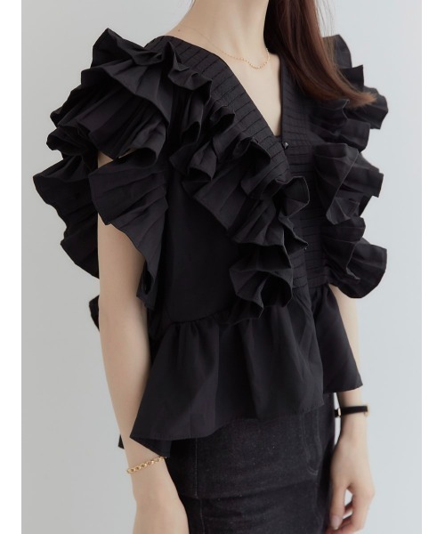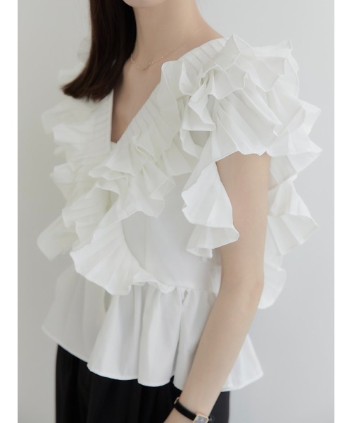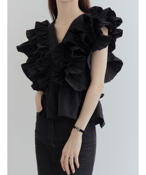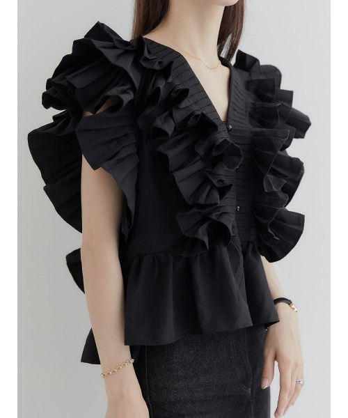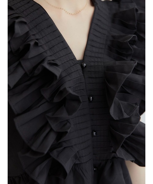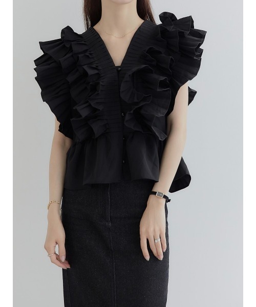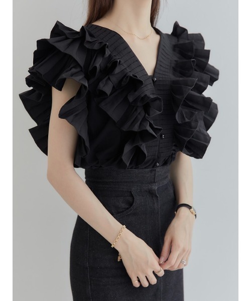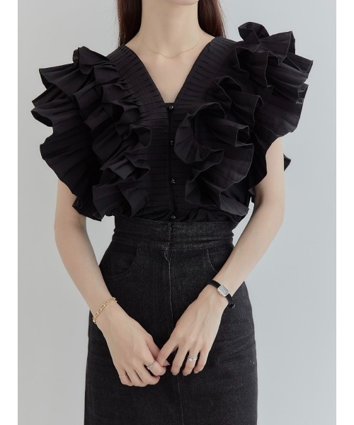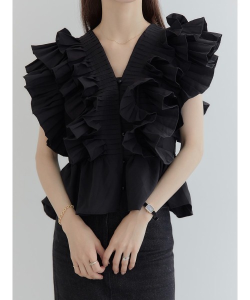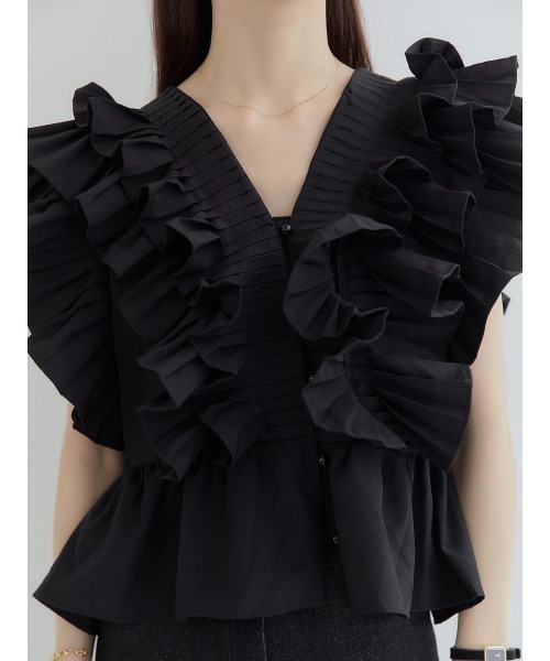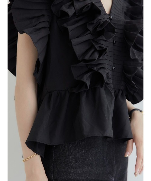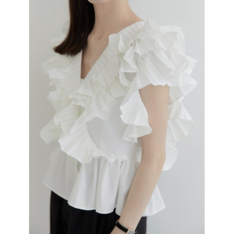 작은 사람들을 위한 여름 신작 일본식 싱글 브레스트 러플 플리츠 쇼트 셔츠 여성용 다용도 탑