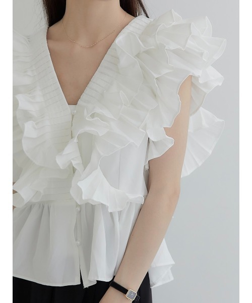 작은 사람들을 위한 여름 신작 일본식 싱글 브레스트 러플 플리츠 쇼트 셔츠 여성용 다용도 탑스토어 가기