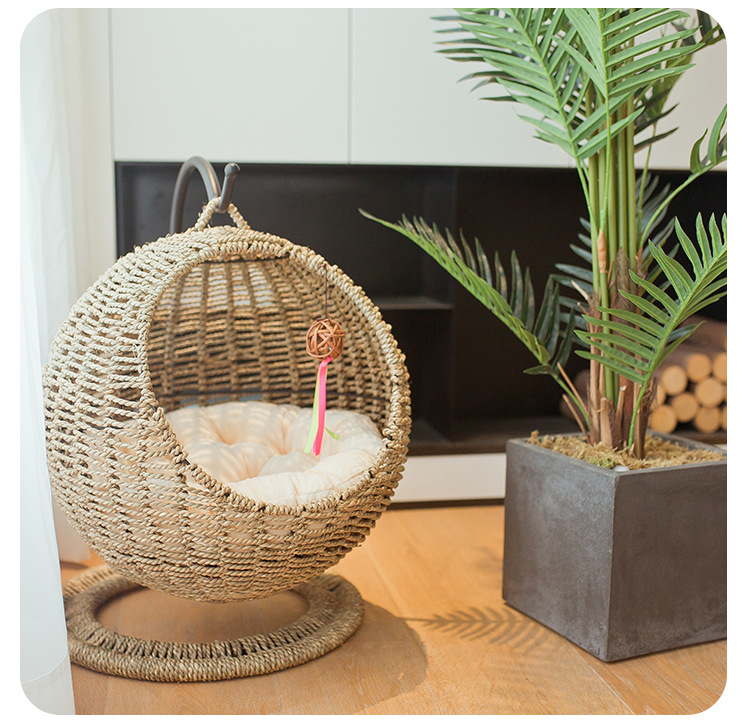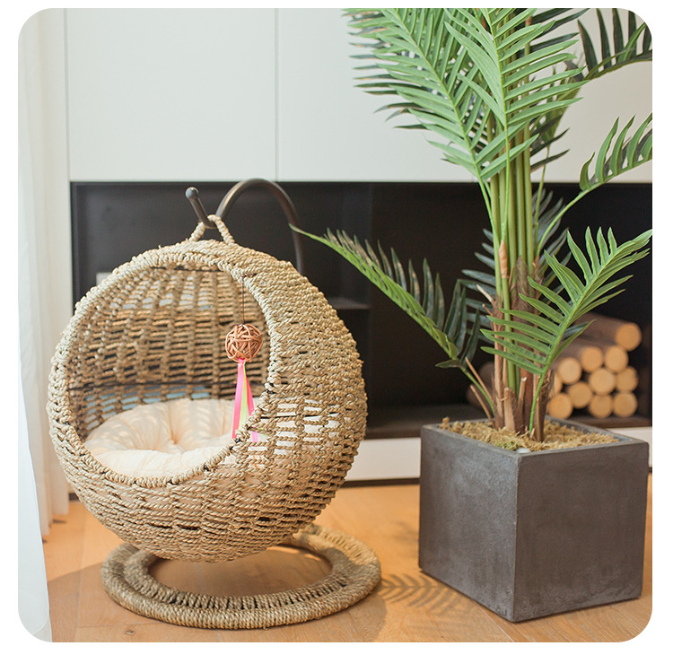 반 폐쇄 애완 동물 해먹 고양이 둥지 고양이 케이지 둥근 고양이 교수형 고양이 침대 바구니 등나무 여름 고양이 해먹 사계절 유니버설스토어 가기