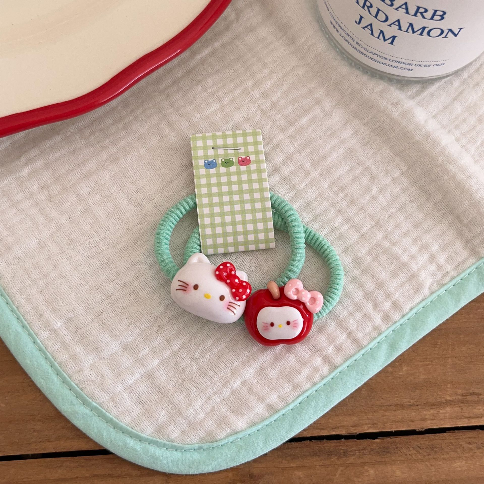 2 팩 귀여운 애플 키티 헤어 로프 헤어 클립 소녀 웨이브 덕빌 클립 부러진 헤어 방탄들 클립 피포니 테일 헤어 링