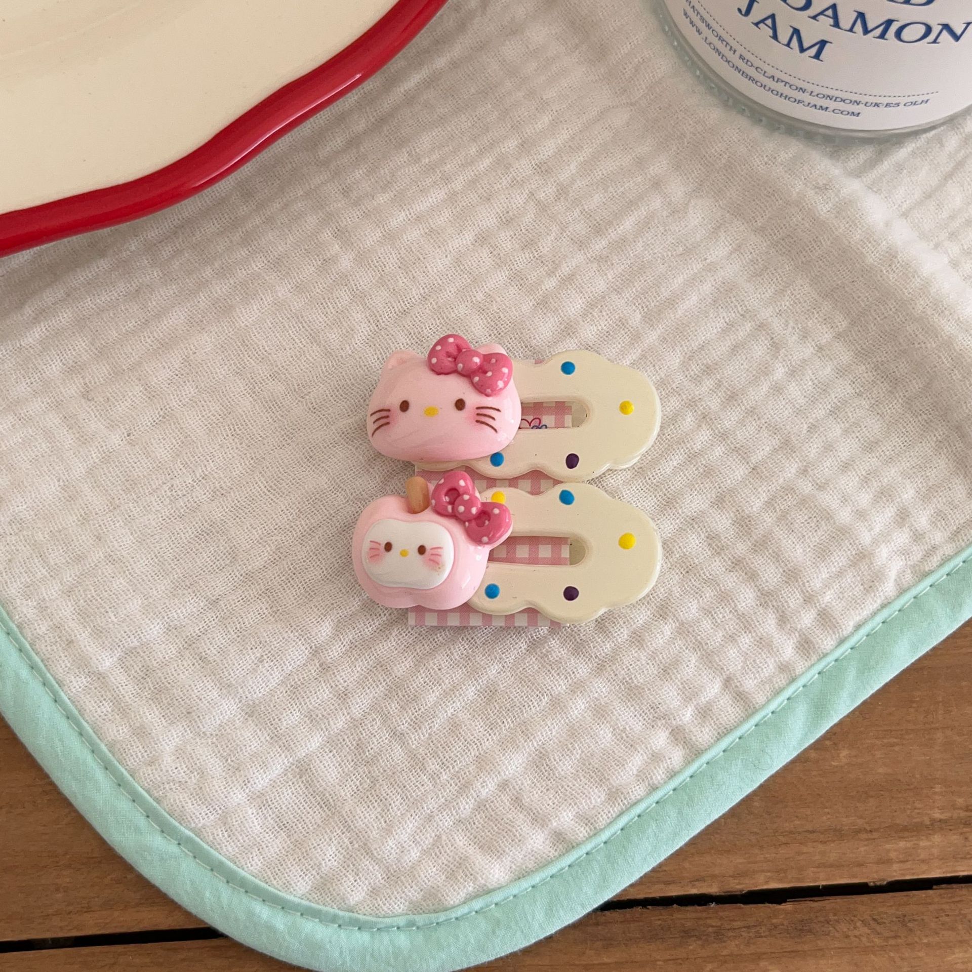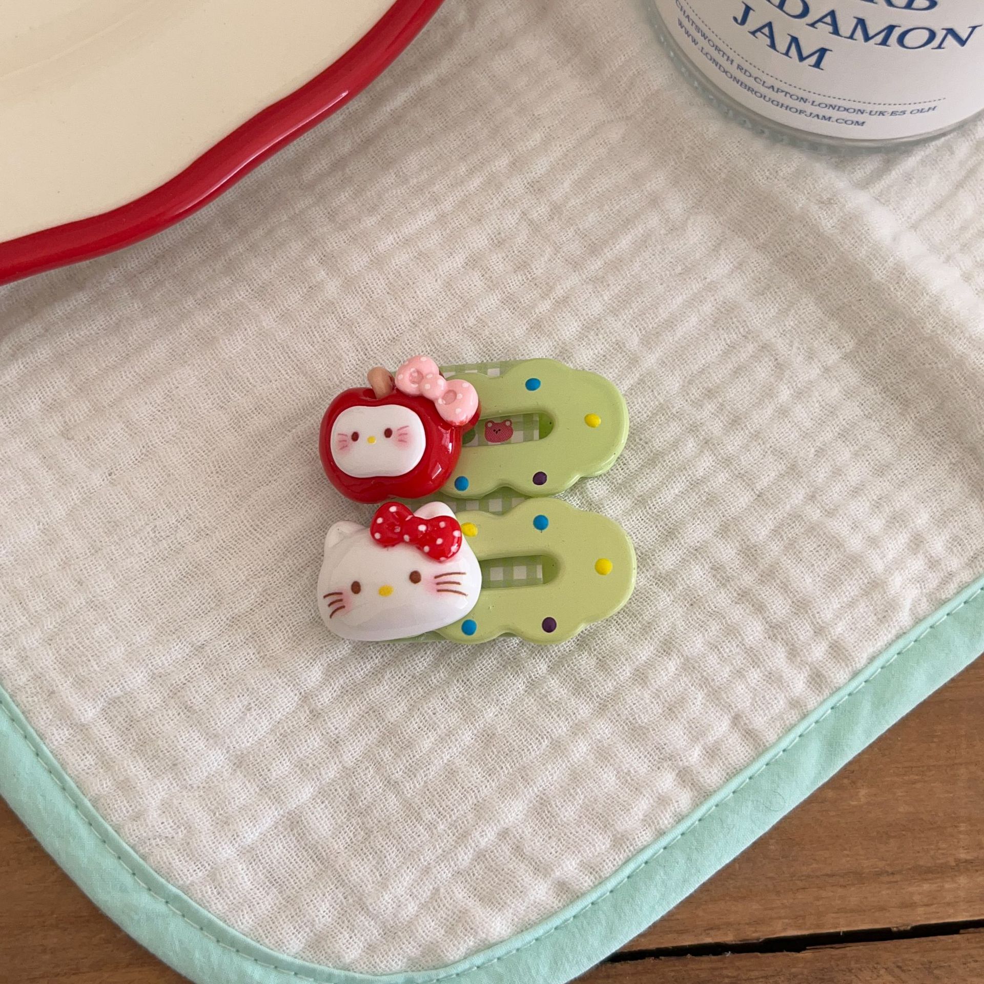 2 팩 귀여운 애플 키티 헤어 로프 헤어 클립 소녀 웨이브 덕빌 클립 부러진 헤어 방탄들 클립 피포니 테일 헤어 링스토어 가기