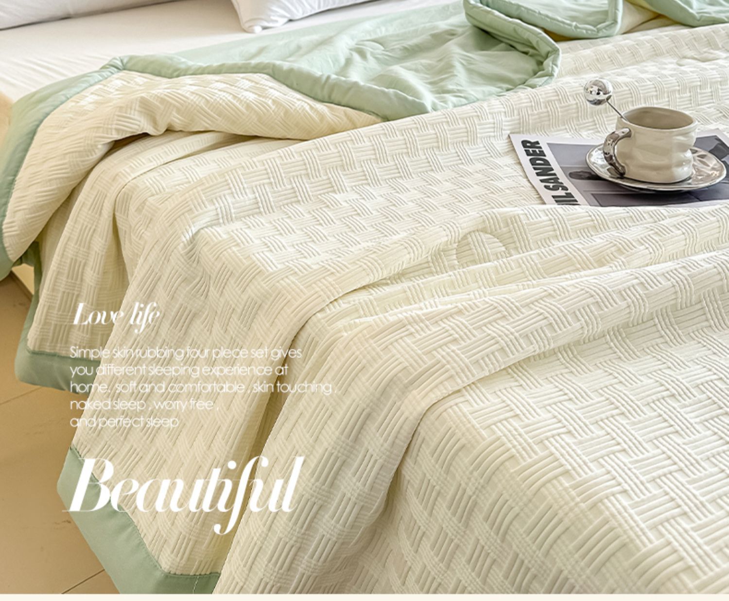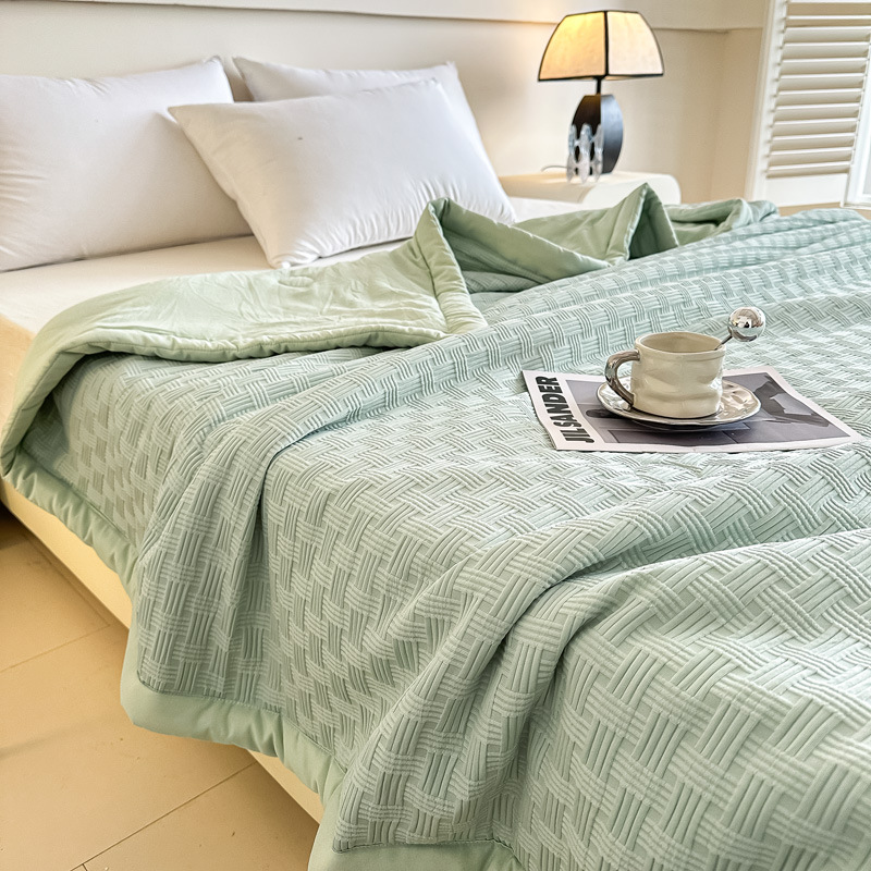 • HFG-터콰이즈 그린 [고효율 항균 알몸 수면 A급 와플 대두섬유 여름 쿨링 이불]