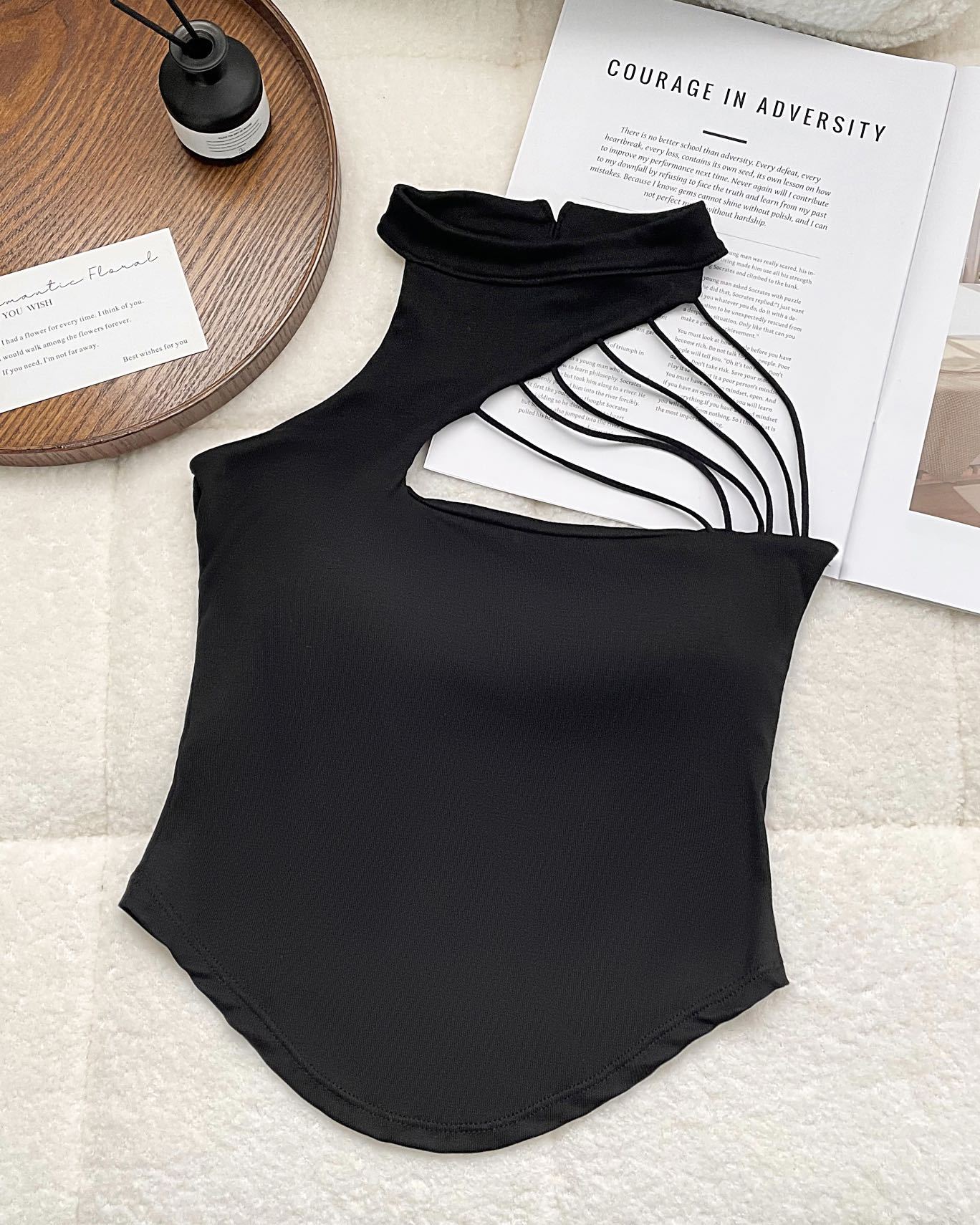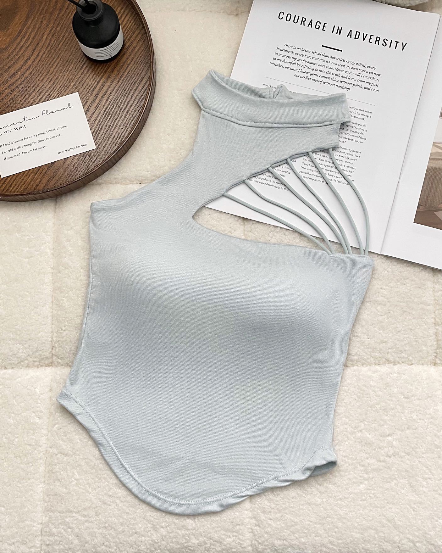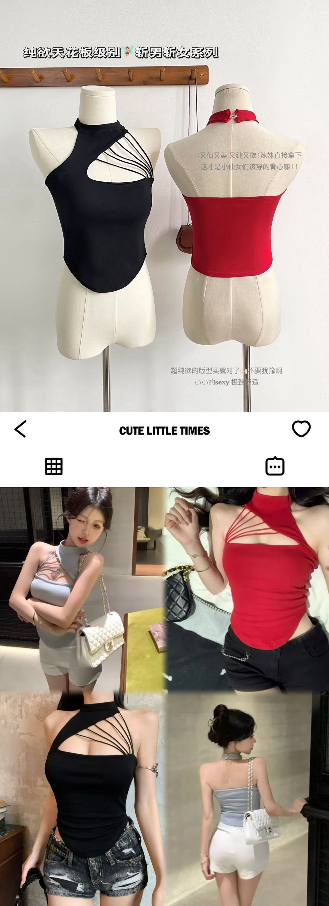 L288 # 아름다운 소녀 중공 목 작은 캐미솔 여름 슬림 불규칙한 짧은 코트스토어 가기