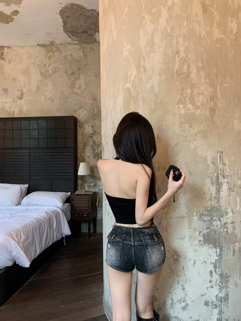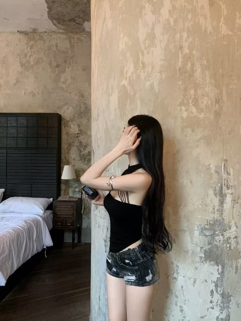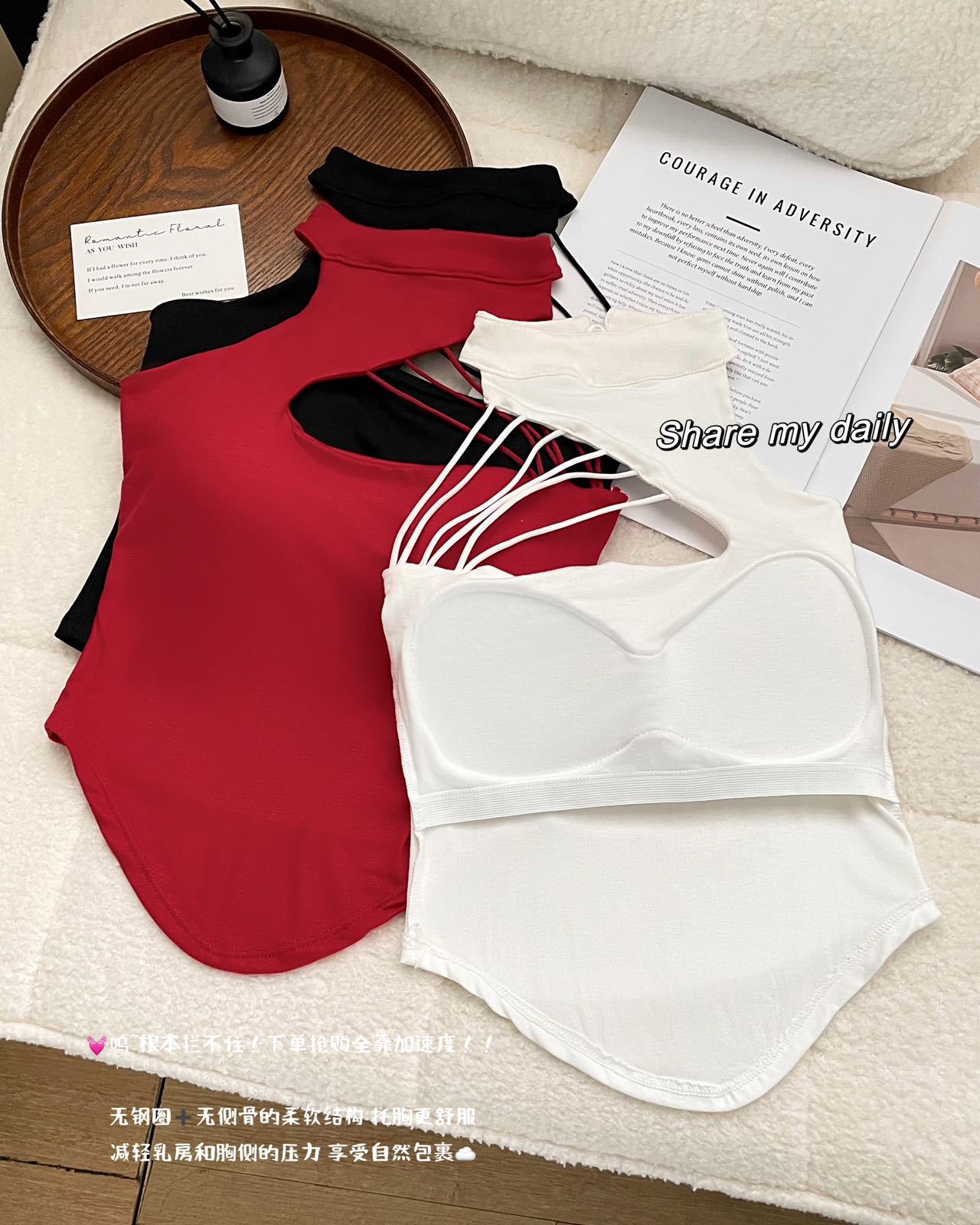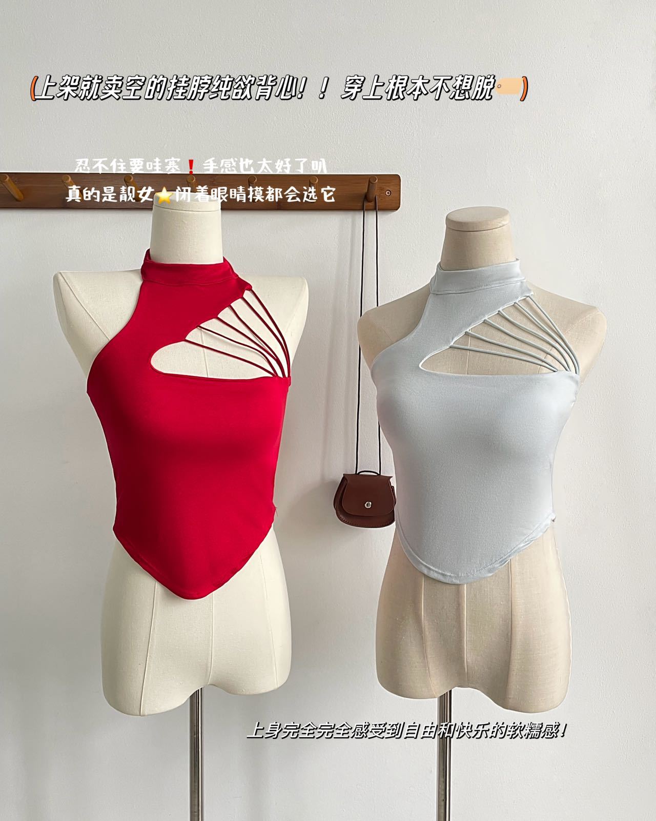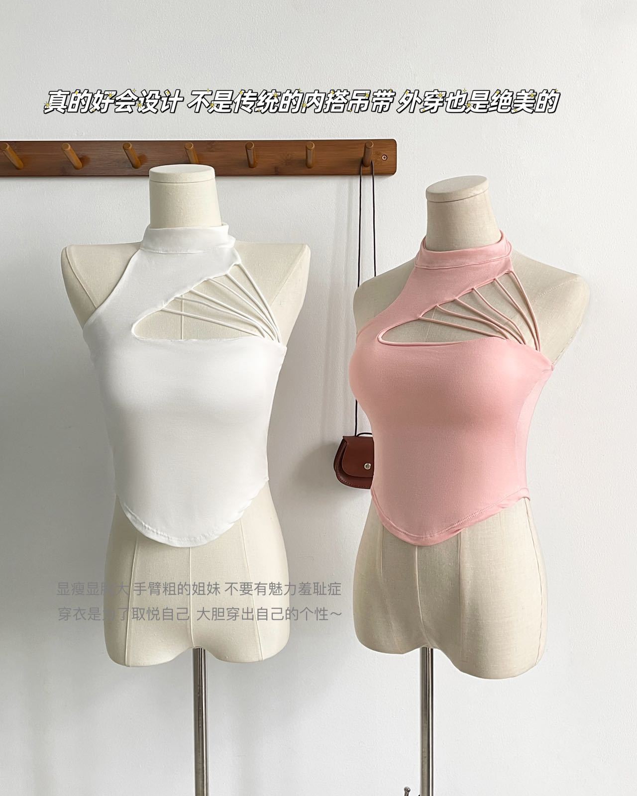 L288 # 아름다운 소녀 중공 목 작은 캐미솔 여름 슬림 불규칙한 짧은 코트