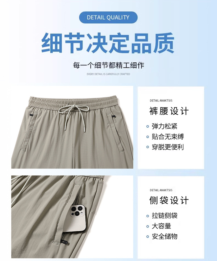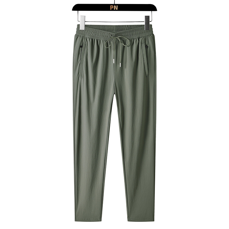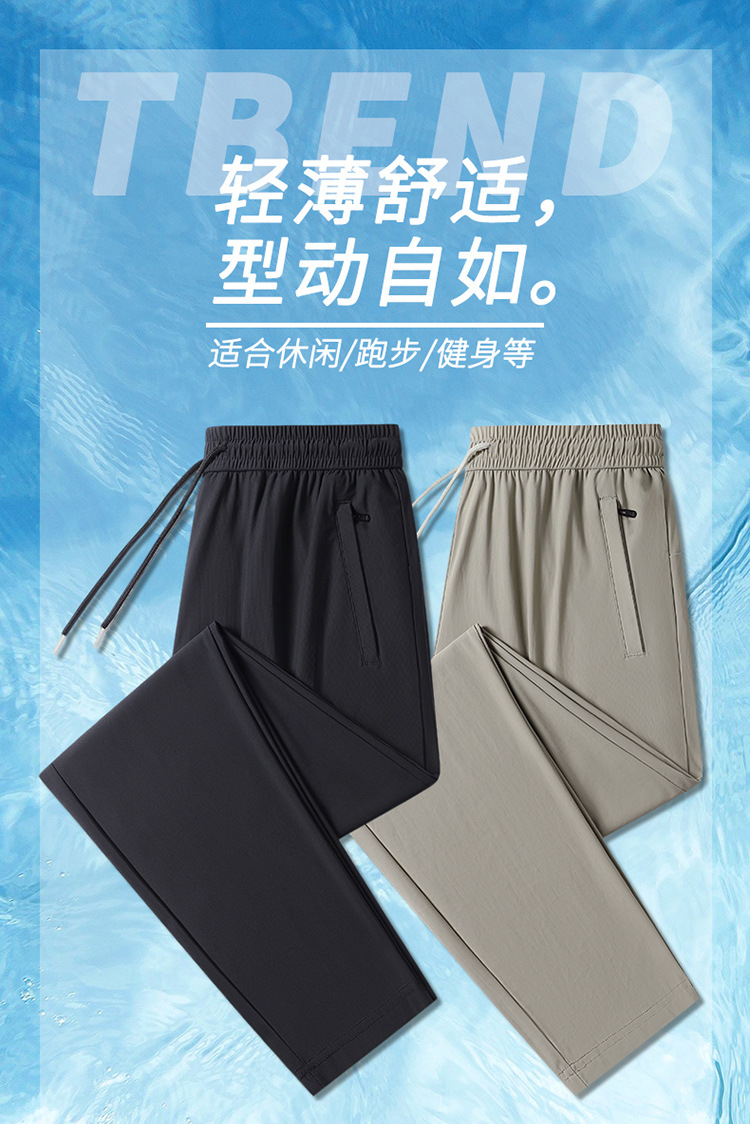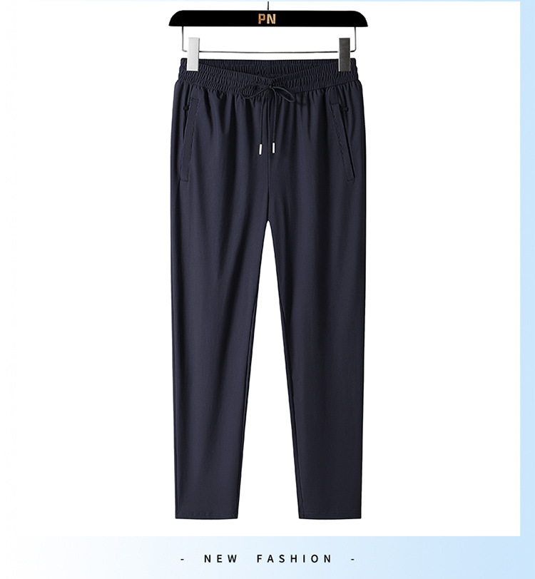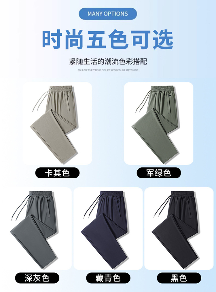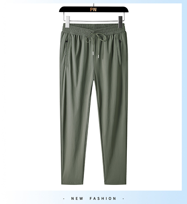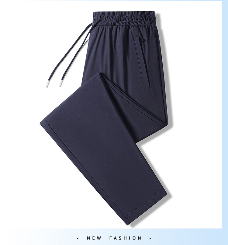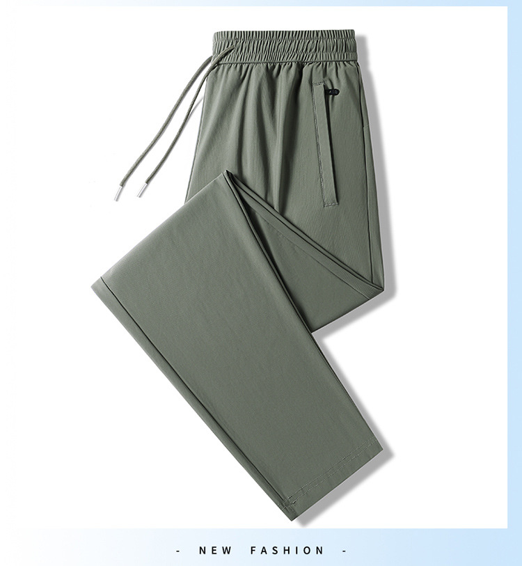 2025 여름 새로운 아이스 실크 바지 남녀 패션 올 매치 캐주얼 바지 남자 아이스 실크 바지 지퍼 포켓 트렌드