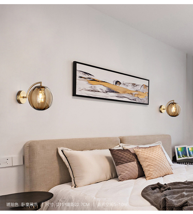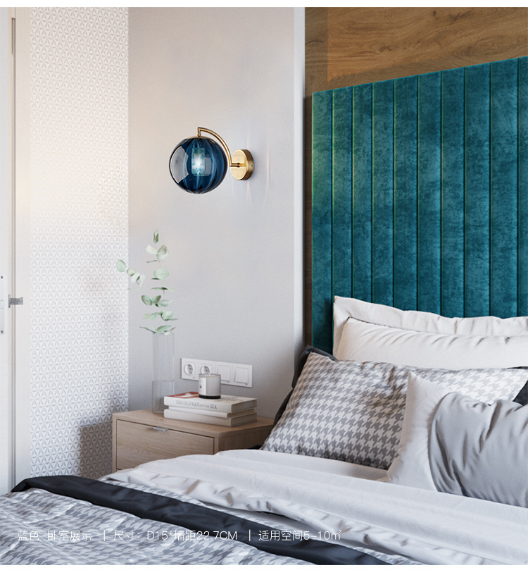 포스트 모던 침실 머리맡 벽 램프 미국 미니멀리스트 북유럽 디자이너 호텔 통로 계단 유리 공 작은 벽 램프스토어 가기