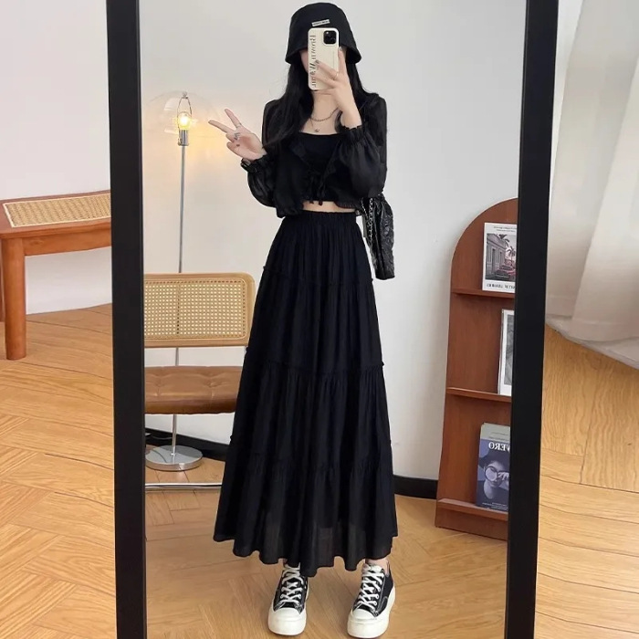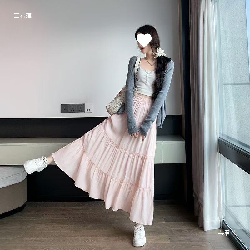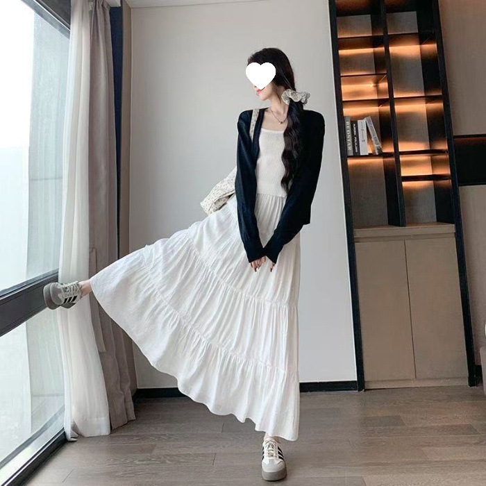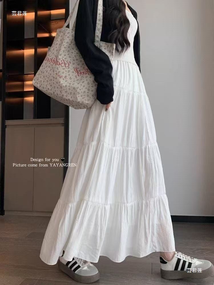 가을, 겨울에 어울리는 부드러운 화이트 스커트, 중간 길이, 하이웨이스트, 슬림하고 우아한 슬릿 스트레이트 원스텝 스커트, 활용도가 높음스토어 가기