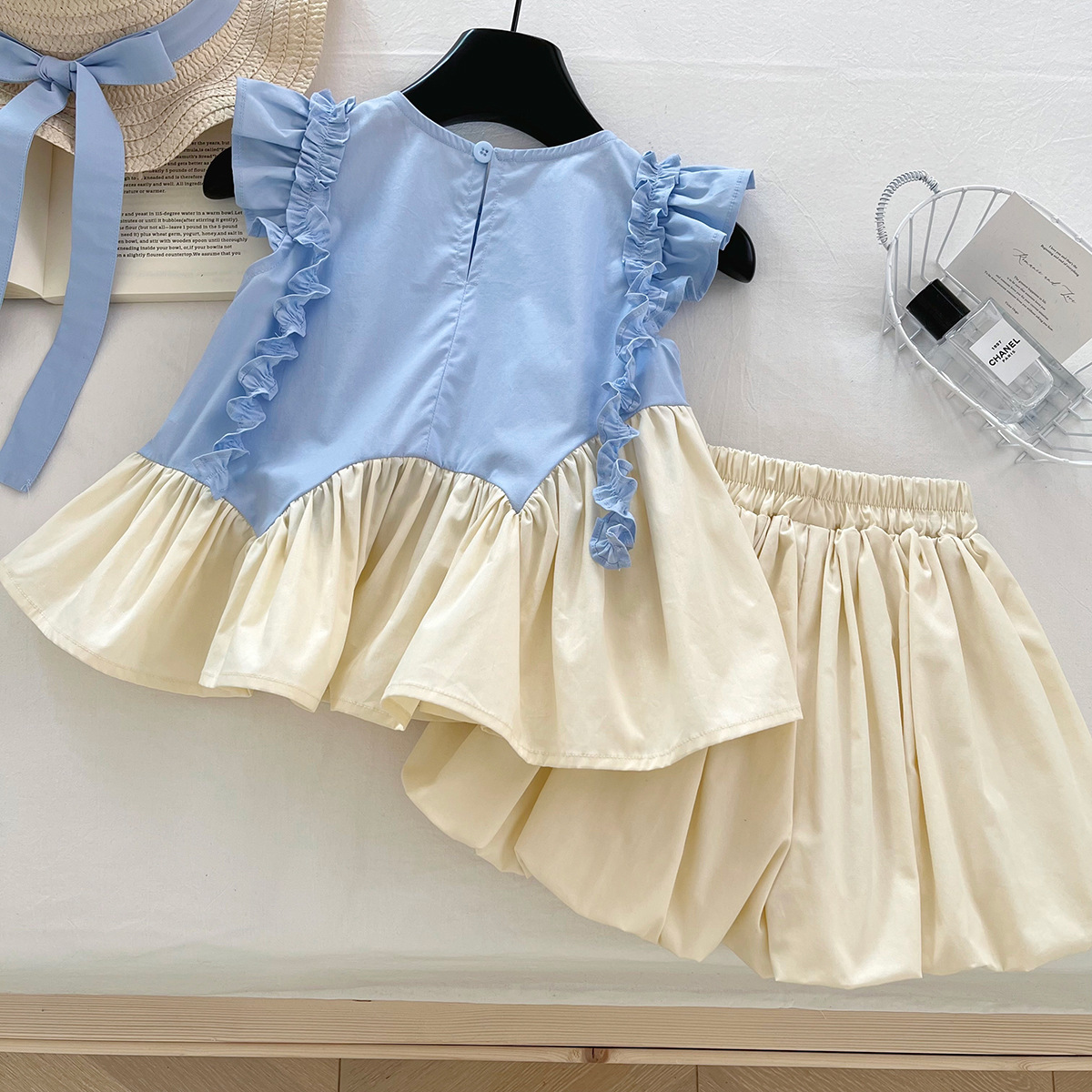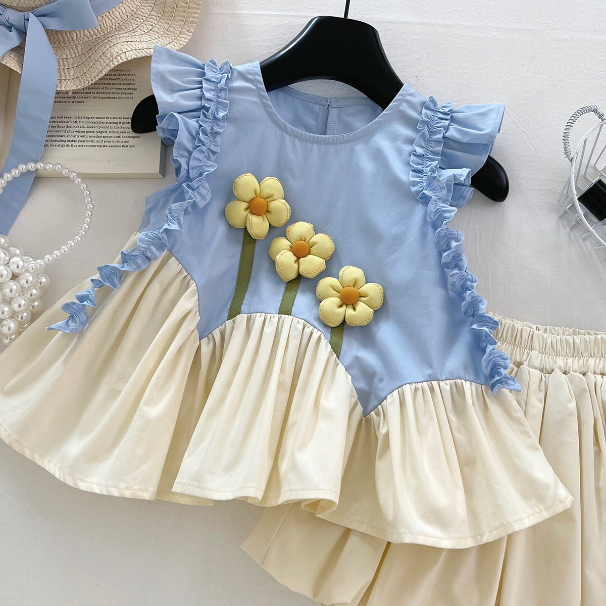 2025 여름 소녀 정장 새로운 어린 소녀 꽃 공주 셔츠 탑 반바지 투피스 세트