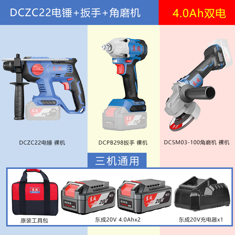 • [3-in-1] 22 리튬 전기 해머 + 298 렌치 + 03 앵글 그라인더