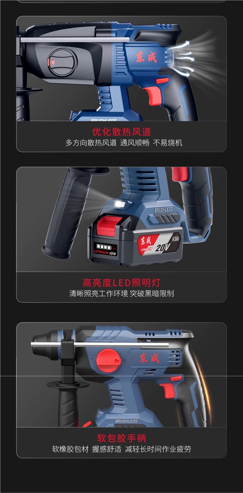 Dongcheng 리튬 배터리 전기 해머 브러시리스 충전 전기 해머 3 사용 전기 드릴 전기 드릴 전기 픽업 전기 해머 리튬 배터리 충격 드릴 전기 시계 Dongcheng스토어 가기