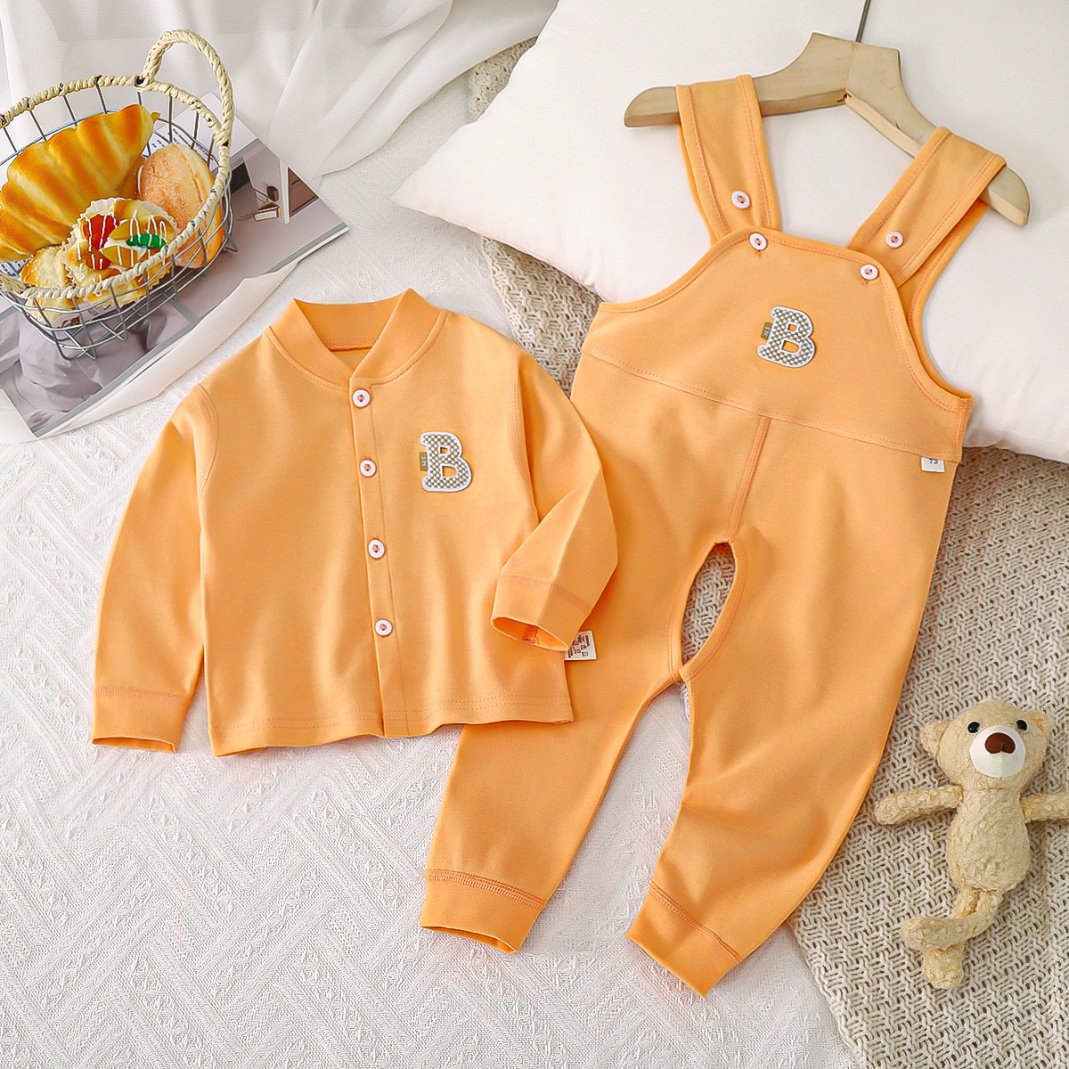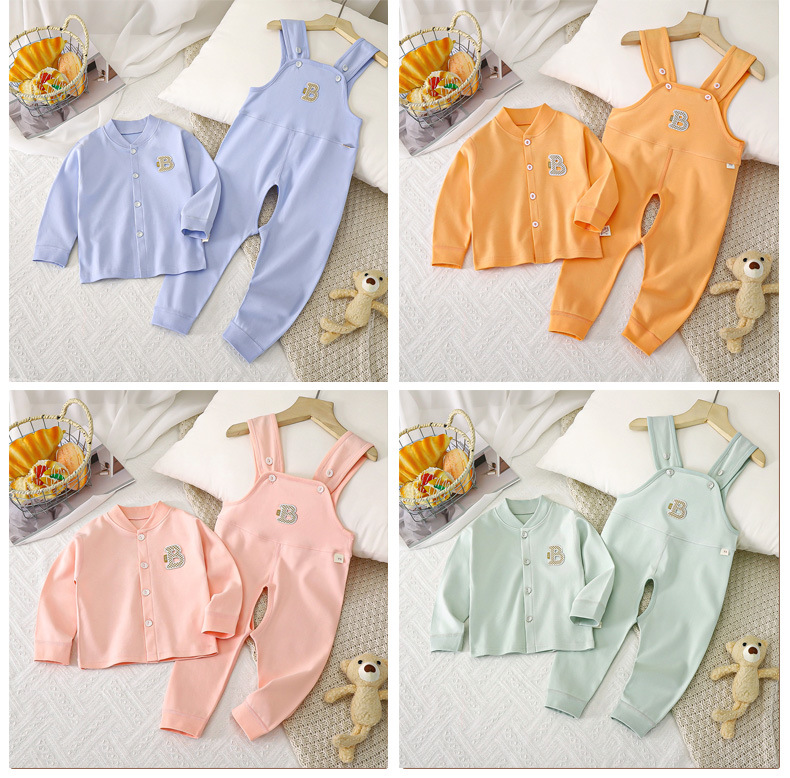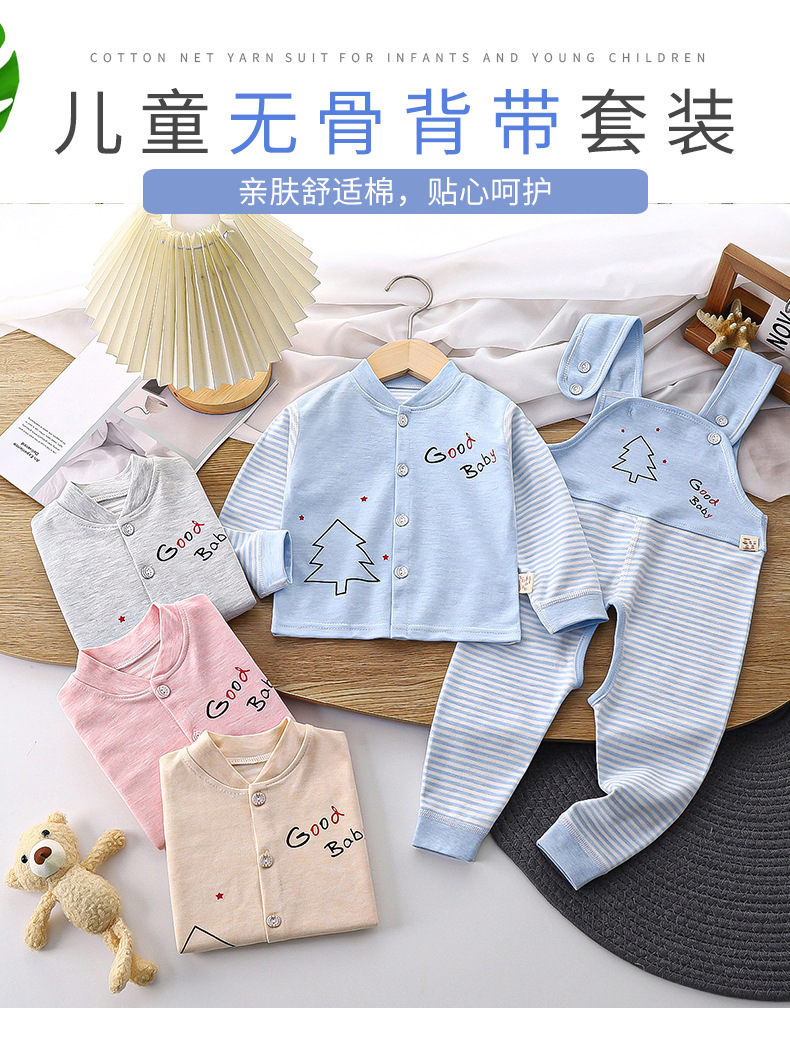 아기 순면 뼈없는 멜빵 세트 유아 봄, 가을 속옷 세트 소년과 소녀 가을 옷과 긴 바지 2 피스 세트스토어 가기