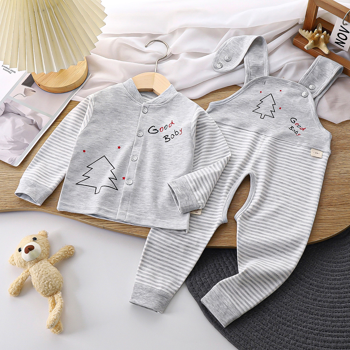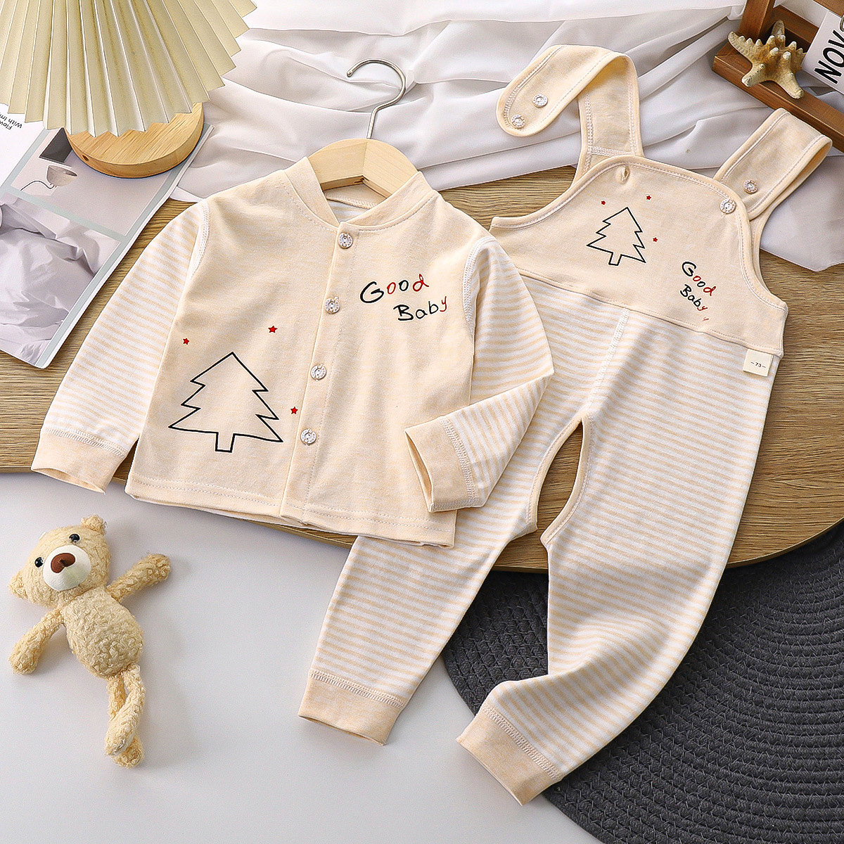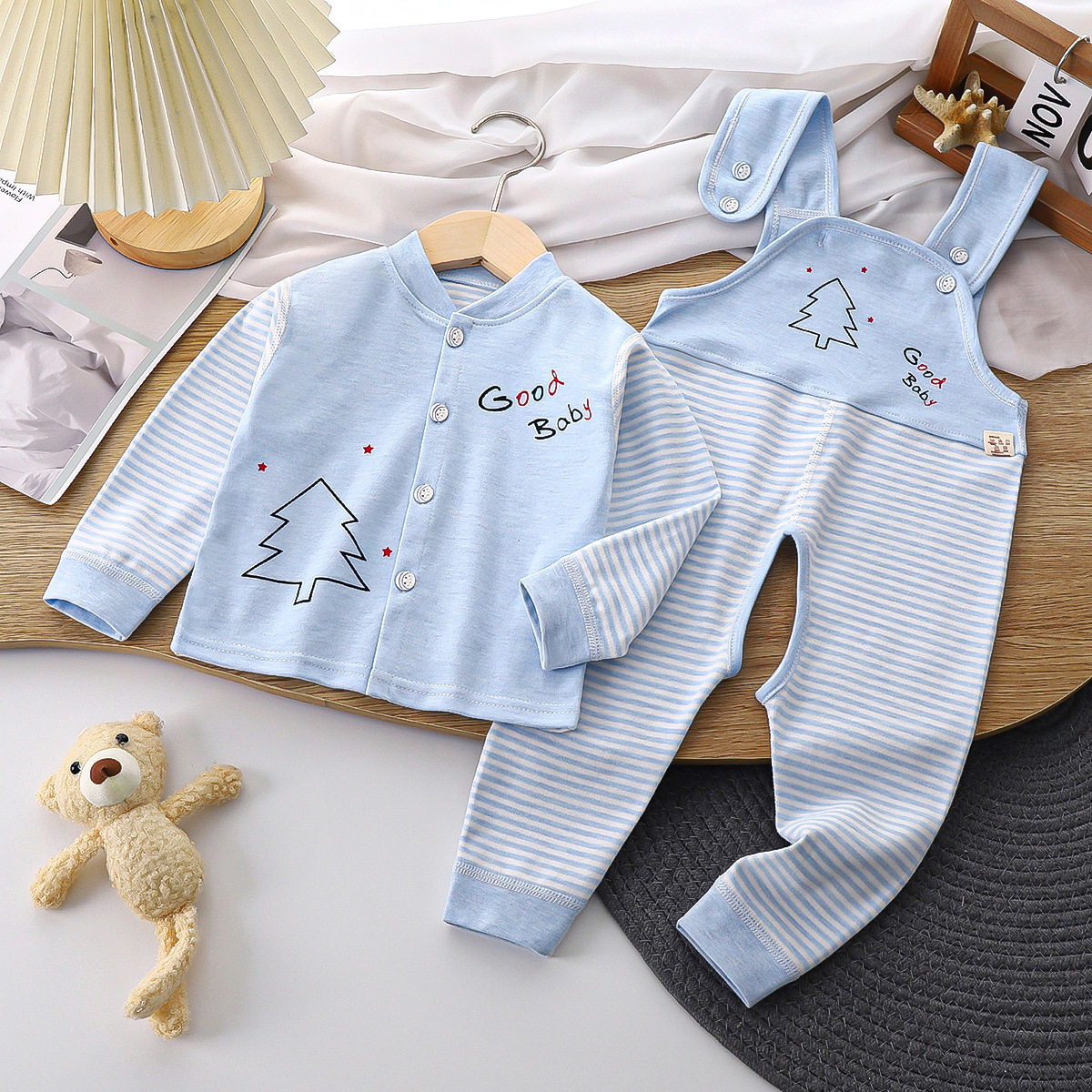 아기 순면 뼈없는 멜빵 세트 유아 봄, 가을 속옷 세트 소년과 소녀 가을 옷과 긴 바지 2 피스 세트스토어 가기